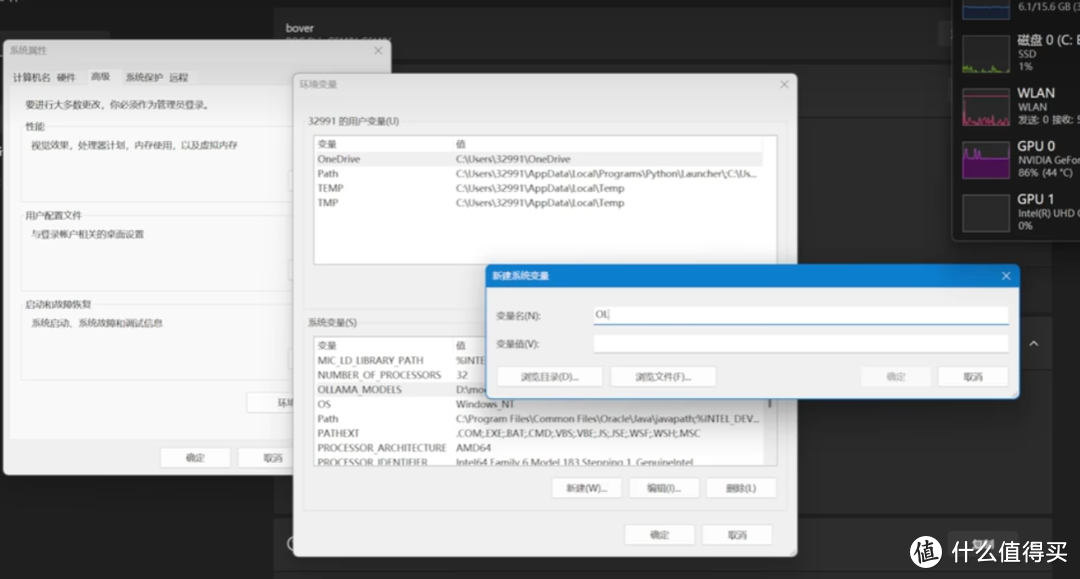 流程:点击“系统信息 > 高级系统设置 > 环境变量,下方新建 > 输入变量名OLLAMA_MODELS > 点击浏览目录并自行选择地方储存。