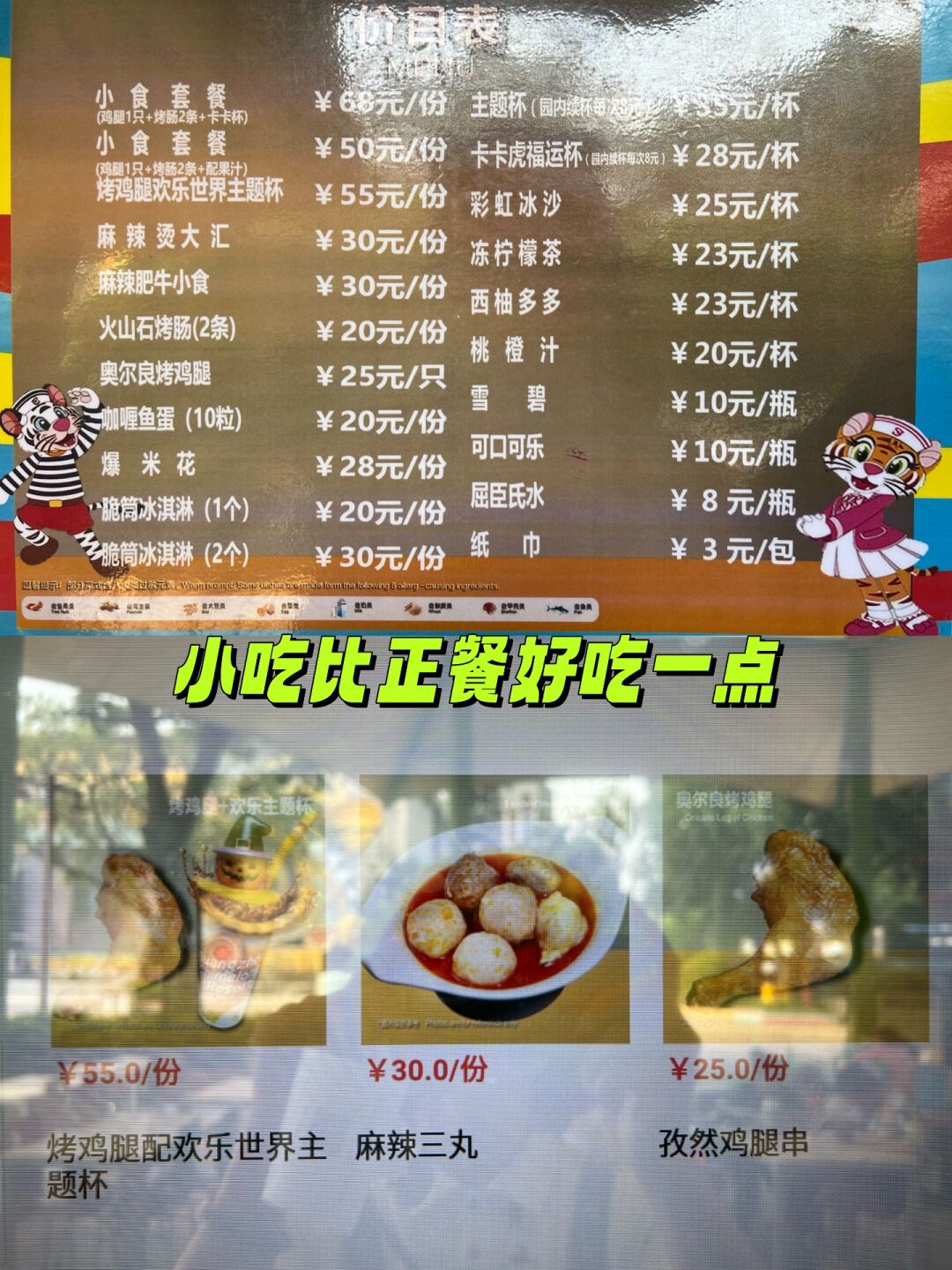 长隆欢乐世界7夜场了‼️可以玩一整天 ‼️经验之谈 ①为了玩更多项目,必须见缝插针的吃东西 ②错峰吃饭,不要12点-13点去人挤人排长队 ③10点前早餐吃饱,中午不吃,15点吃下午茶 ④欢乐世界里有餐厅、小卖部,有自动贩卖机 ‼️可以叫外卖!可以自带食物! ㊙️码住:长隆欢乐世界【热门游戏旁的餐厅】 👉【椰林餐厅】 周边:旋转木马、中央大舞台 菜式:粤菜茶餐厅,豉油鸡饭、卤牛肉饭 ✅:大面积室内空调空间+外场可看巡游的座位 ❌:用餐高峰期现场比较混乱 👉【飞轮汉堡屋】 周边:十环过山车、摩托过山车、龙卷风暴 菜式:炸鸡堡、牛肉堡、鸡翅、薯条 ✅:方便打包,排队啃面包 ❌:室内空间较小 👉【美食焦点】 周边:垂直过山车、超级大摆锤、激流勇进 菜式:鸡扒炒饭、炸鸡桶、牛腩面 ✅:大舞台有表演时可以蹲 ❌:室外桌椅,没有空调 👉【古堡餐厅】 周边:u型滑板、碰碰车 菜式:鸡扒饭、羊排饭 👉【路边摊小吃】 周边:每个区域都有 菜式:烤肠、鸡腿、烤鱿鱼、雪糕、冰沙、水 ㊙️温馨提示 ①有心理准备👉长隆的餐不好吃!性价比很低 ②最好错峰吃饭,不然找个空调位很难 ‼️可以带食物进欢乐世界,不用偷偷摸摸藏 ③园内餐厅不一定都会开,会根据人流调整 ‼️会员点餐能打折!最高8折 👉在现场让别人帮刷,有积分,会员们都乐意 👉但会员码每分钟都更新,截图、拍照没用 长隆欢乐世界·园外有很多好吃的餐厅 \