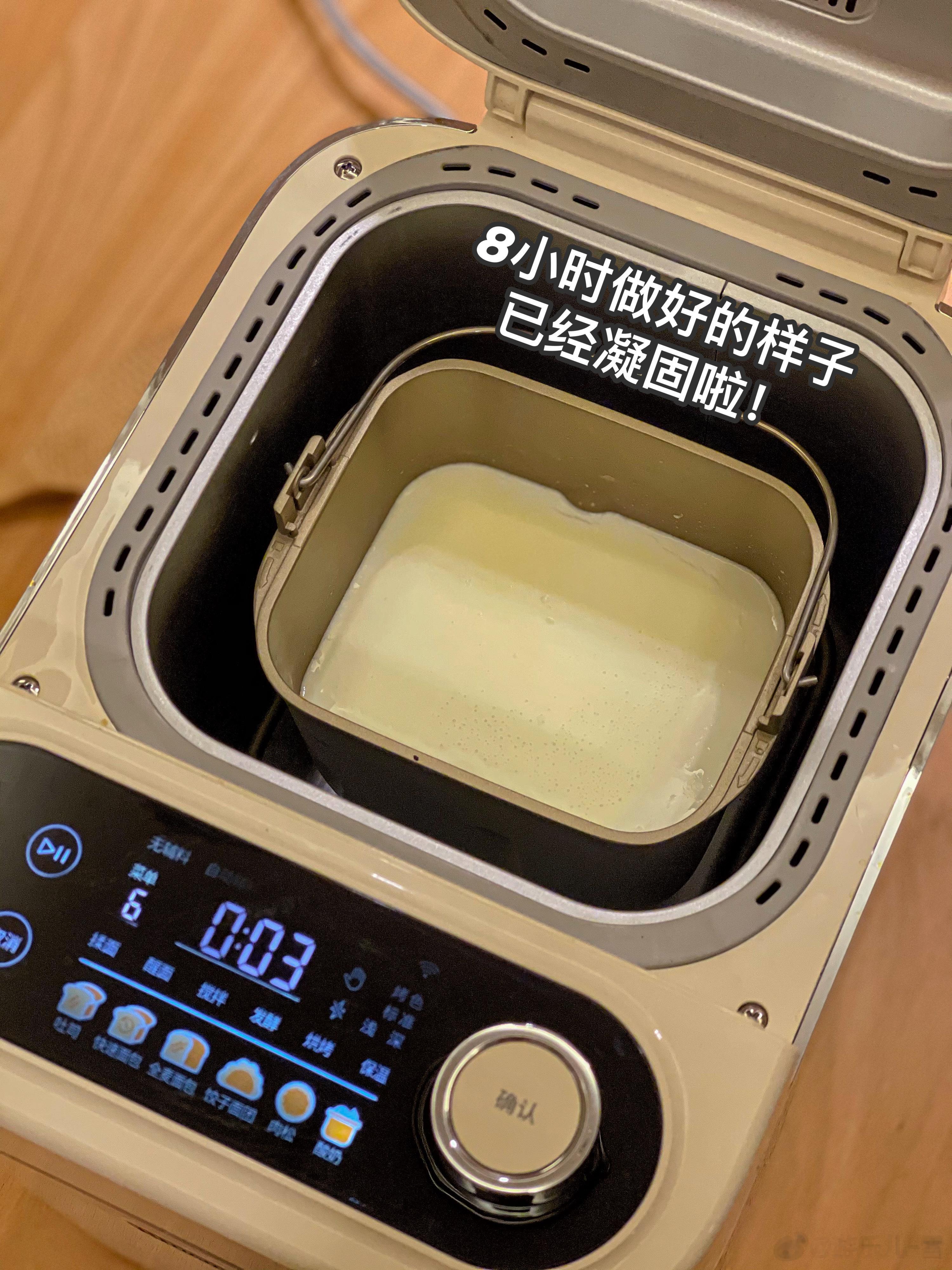 3.盖上盖子,菜单选6【酸奶】按开始即可。默认8小时,整个制作过程不要移动面包机哦。