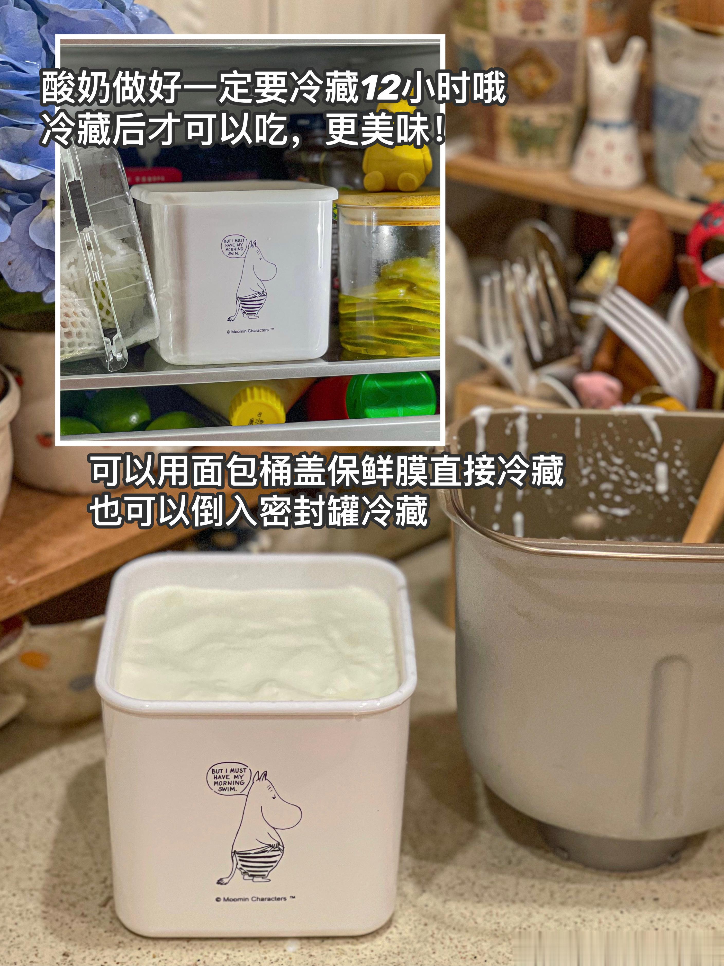 冷藏后就可以吃啦!把酸奶转移到密封盒,冷藏保存,一周内吃掉。