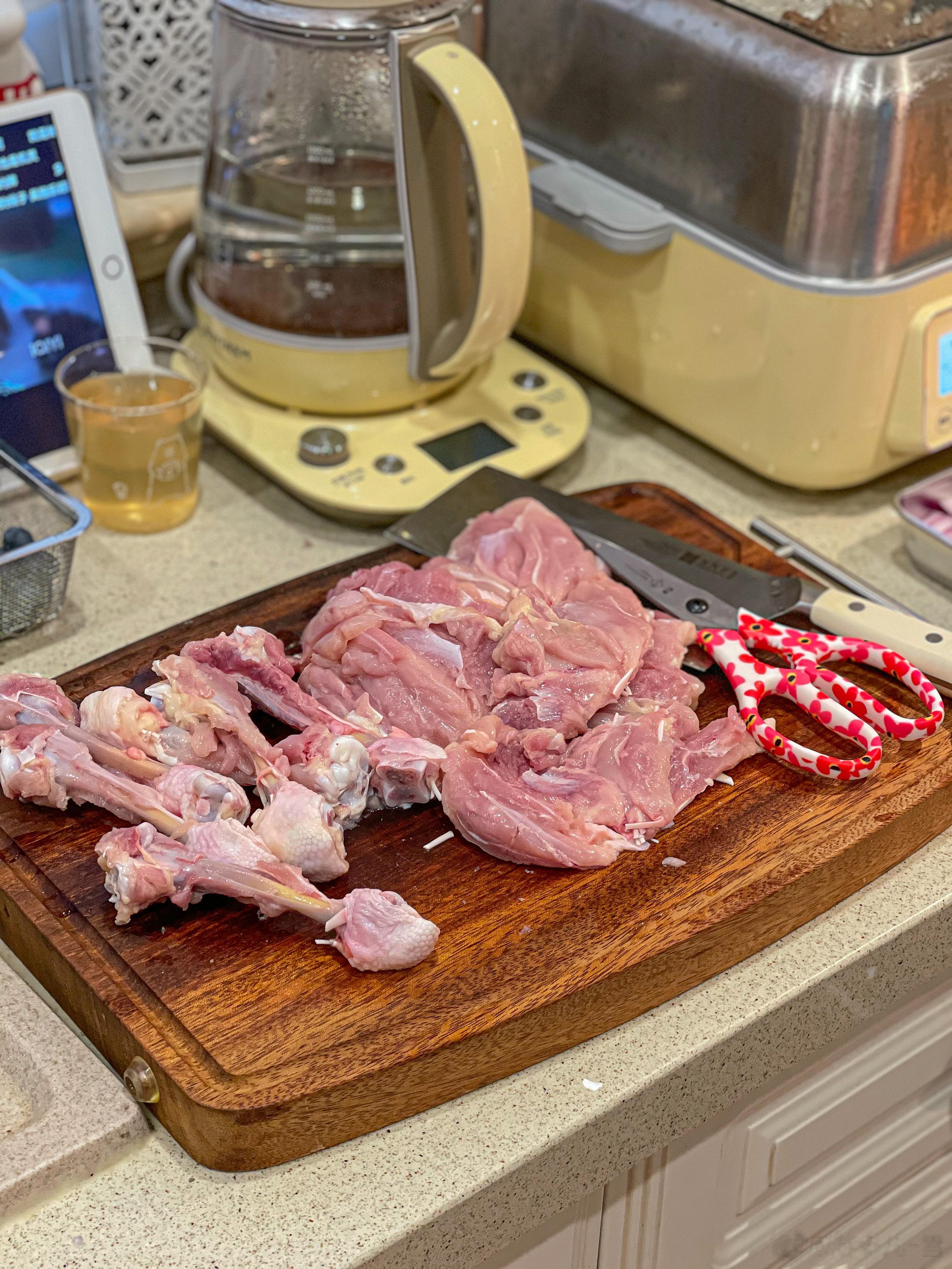 下午做的肉松晾凉啦,装进密封瓶。赶紧做晚饭,今天是鸡肉咖喱,看的剧是《莲花楼》古