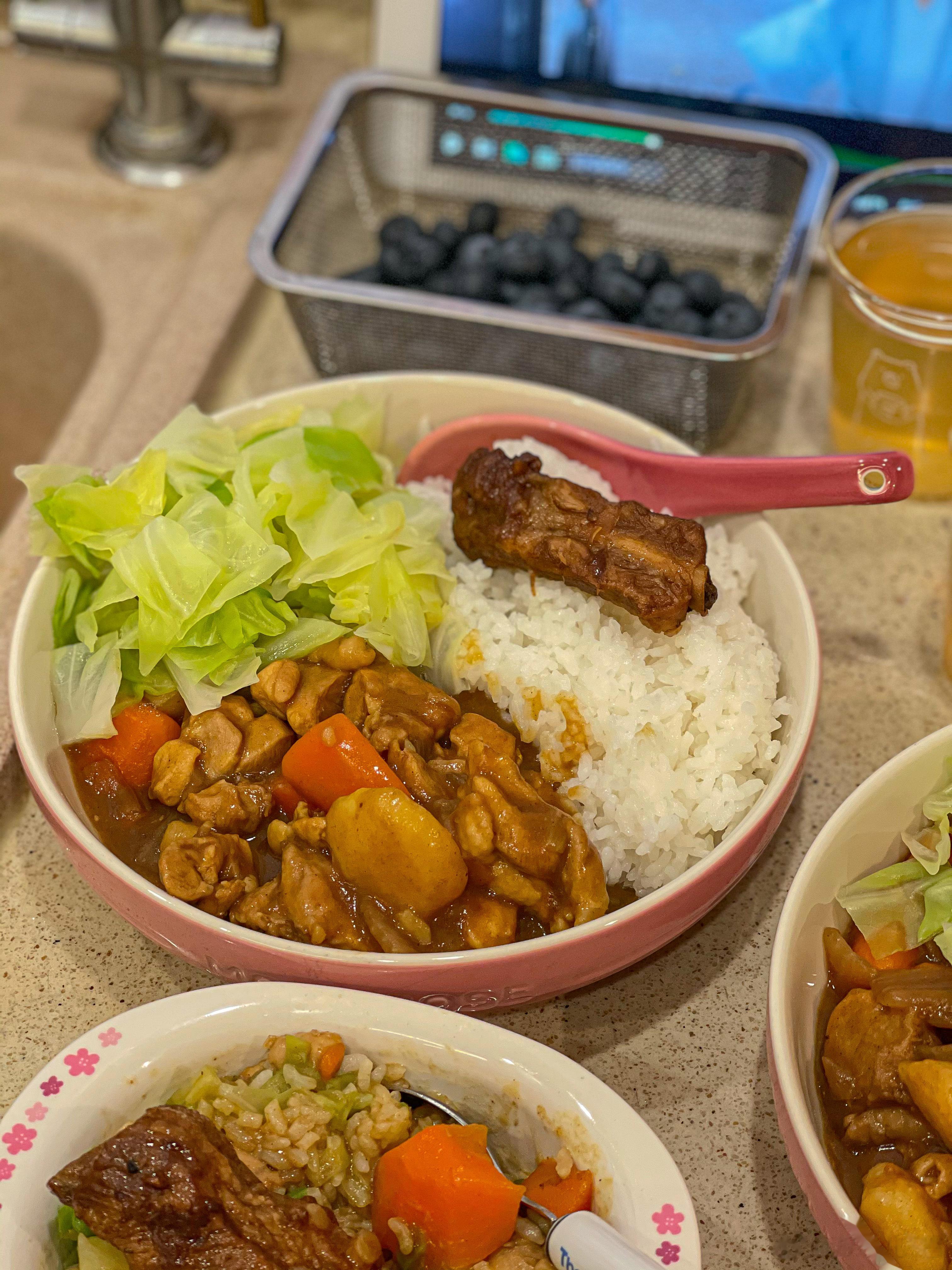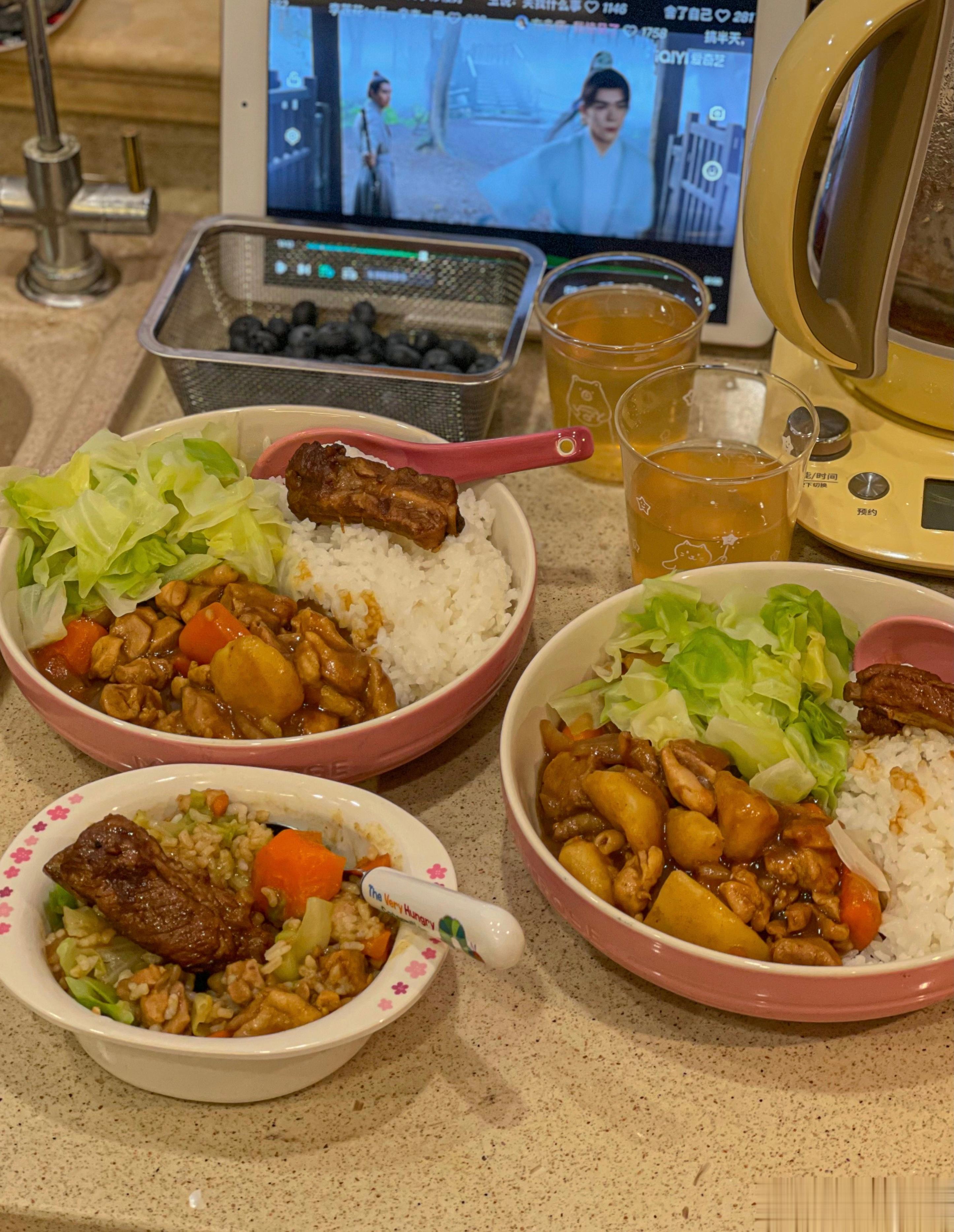 赶紧做晚饭,今天是鸡肉咖喱,看的剧是《莲花楼》古装版柯南。