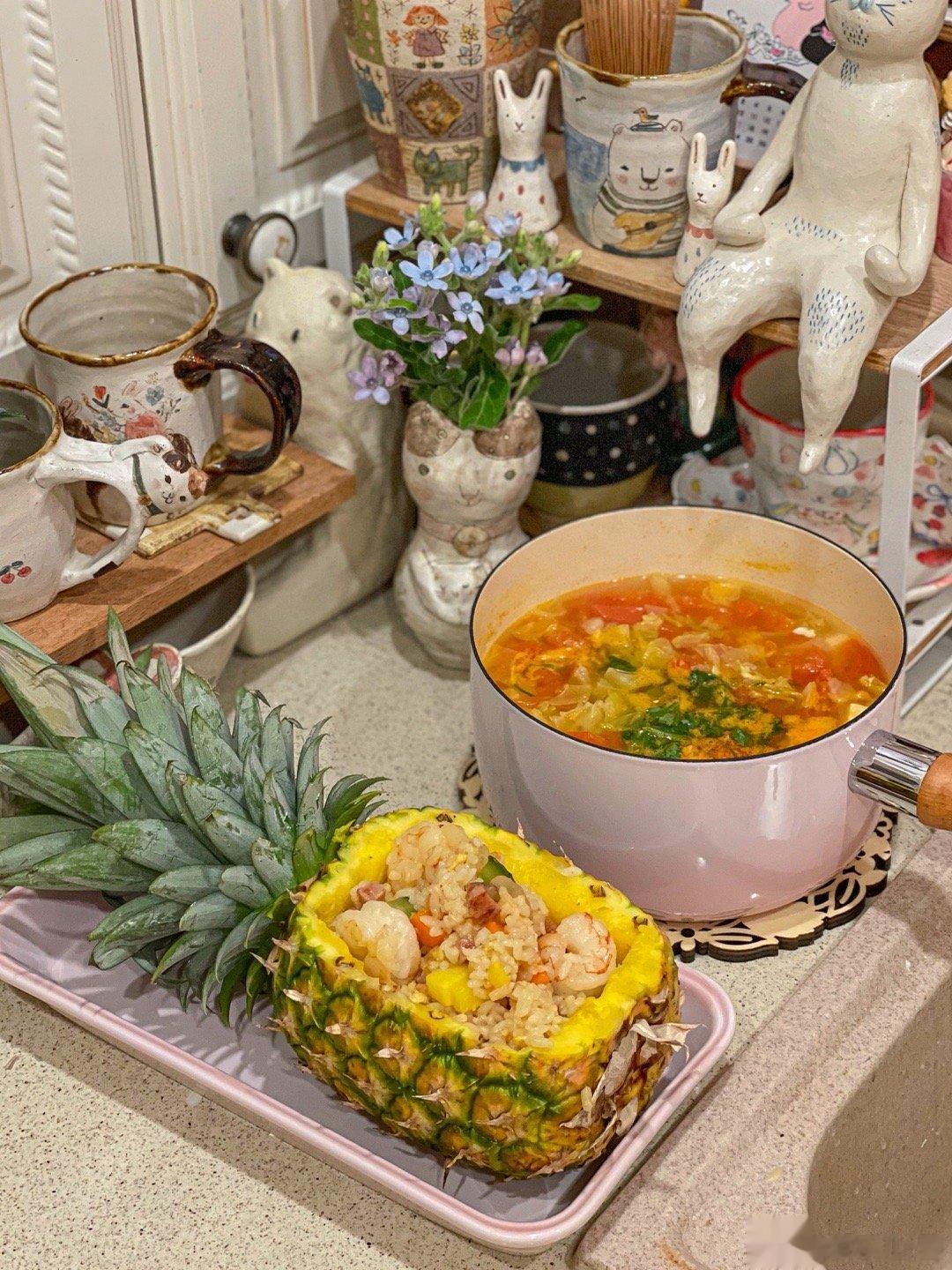 晚餐:菠萝炒饭+西红柿豆腐汤