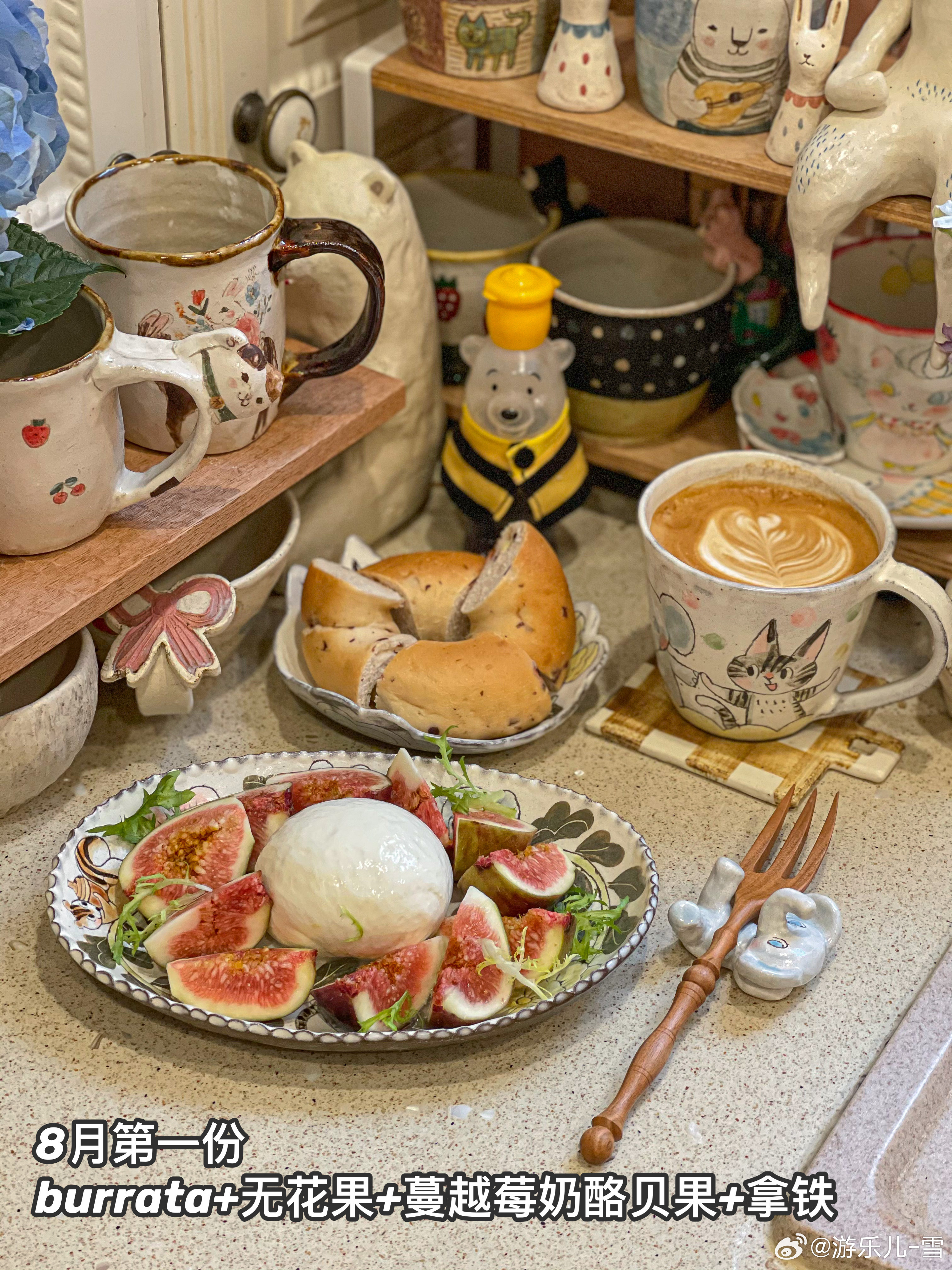 继续记录早餐生活,今天吃burrata+无花果,淋一点蜂蜜,奶香甜甜真的很美味。