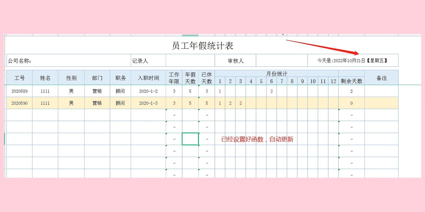 干货手把手教你算年假,表格拿来即用! Hello,姐妹们,今日分享年假的计算方法,以及年假自动统计的表格,表格都已经设置好了函数,自动填入本公司的人员数据即可,非常方便