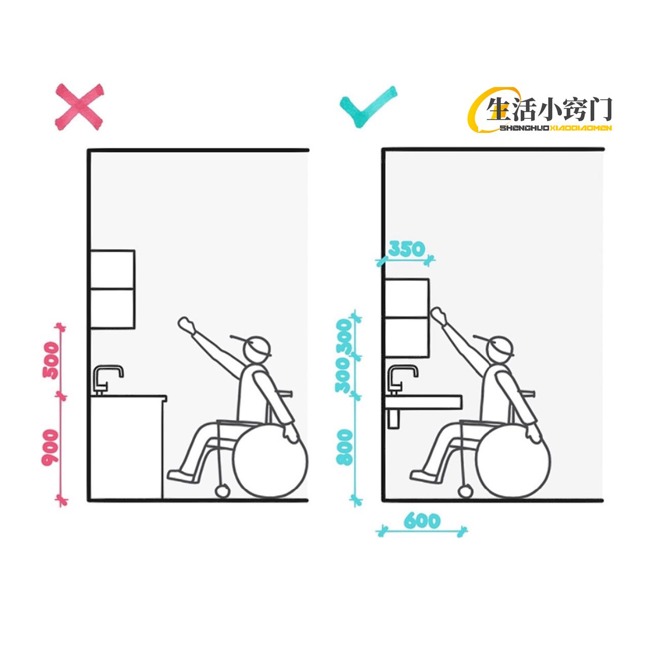 人性化设计是每个家庭使用功能中最重要的一环.经常会碰到,家中有使用轮椅的老年人,或长期行动不便人群的家庭, P1: 轮椅使用最佳轨道尺寸750+900mm, 以方便有人在侧辅助. P2:轮椅无障碍使用入口前最小空间参考. P3:轮椅无障碍改善橱柜尺寸参考 P4:轮椅无障碍改善浴室柜尺寸参考 P5:轮椅无障碍坡道和扶手尺寸参考,超过5%的斜度轮椅使用者很难移动. P6:车库停车位预留尺寸参考.