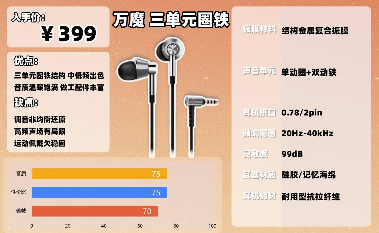 4、万 魔三单 元圈铁耳 机