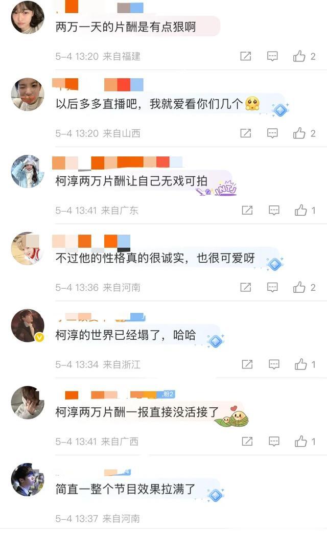柯淳聊到自己因为在综艺里面说了自己想要两万片酬,结果都没有导演给他递剧本了。