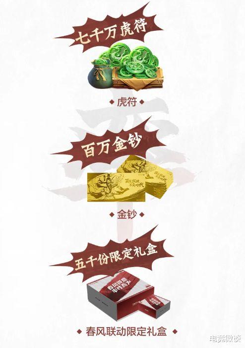 第一重福利,在6月5日到6月30日期间,所有新服都疯狂放送福利,不管是青春服还是经典服,都能让你爽玩。总计7千万虎符、价值百万金钞、5000份春风联动限定礼盒,单人最高能获得12279虎符,还有价值549的0.5g金钞一件,再加上春风联动限定礼盒。开荒攻城能狂赚虎符,打地还能爆9999虎符,这真的不要太爽。