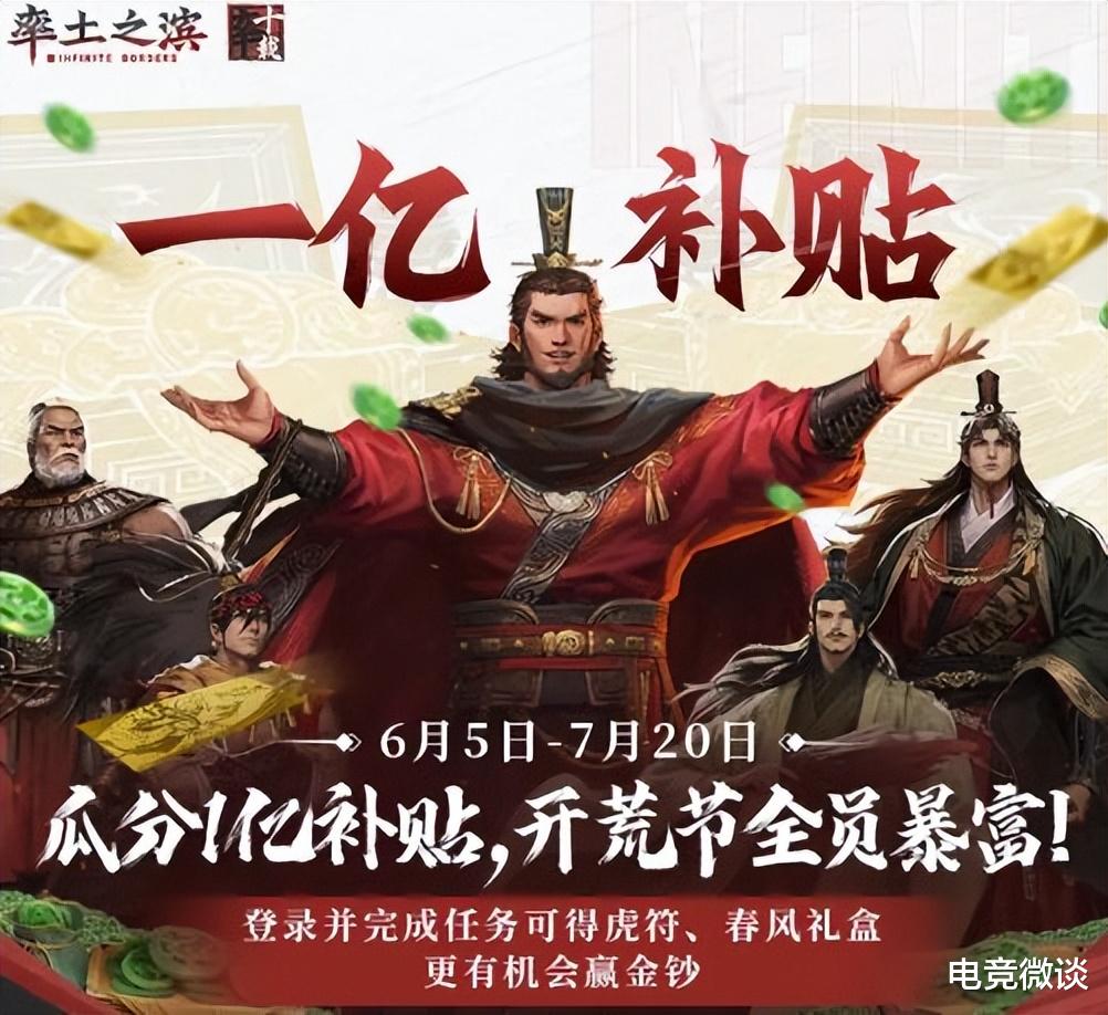 除了青春服,《率土之滨》还搞了一个超豪横的“1亿补贴开荒节”宠粉活动,从6月5日一直持续到7月20日,活动期间福利多到让人眼花缭乱。
