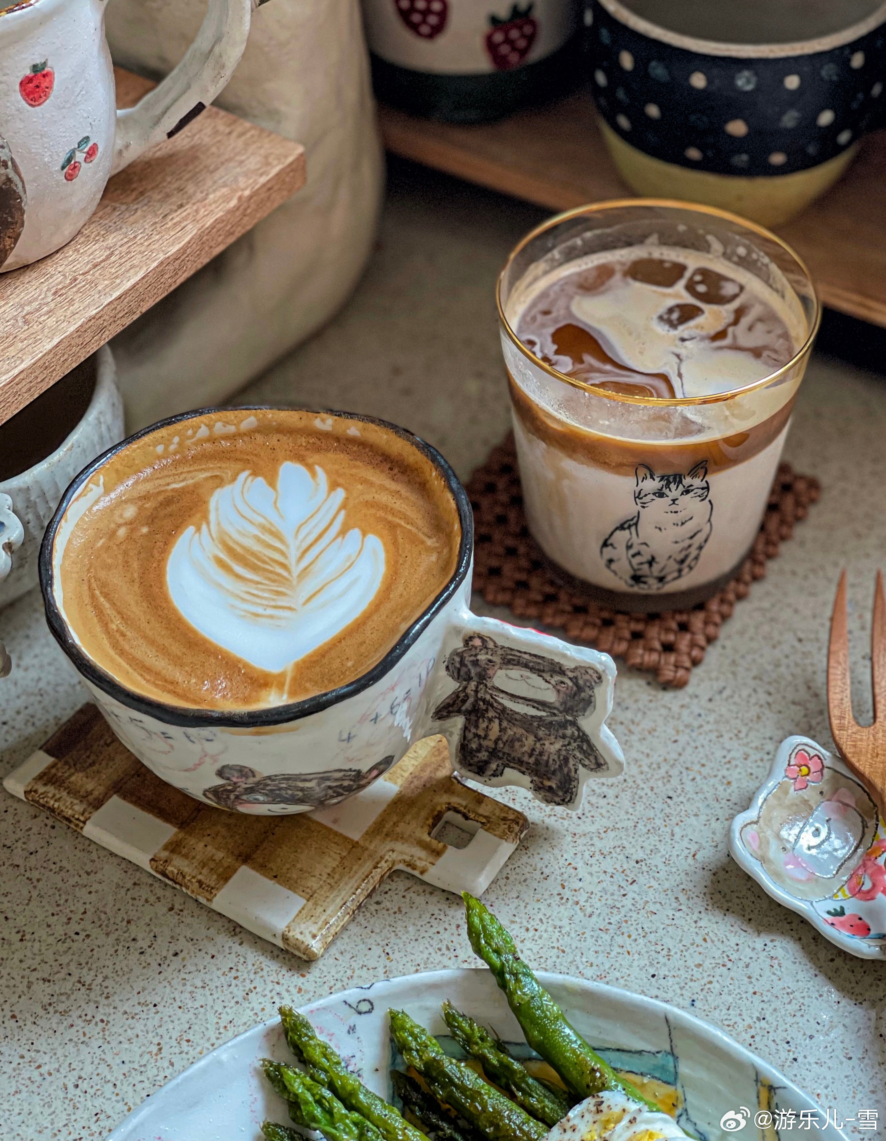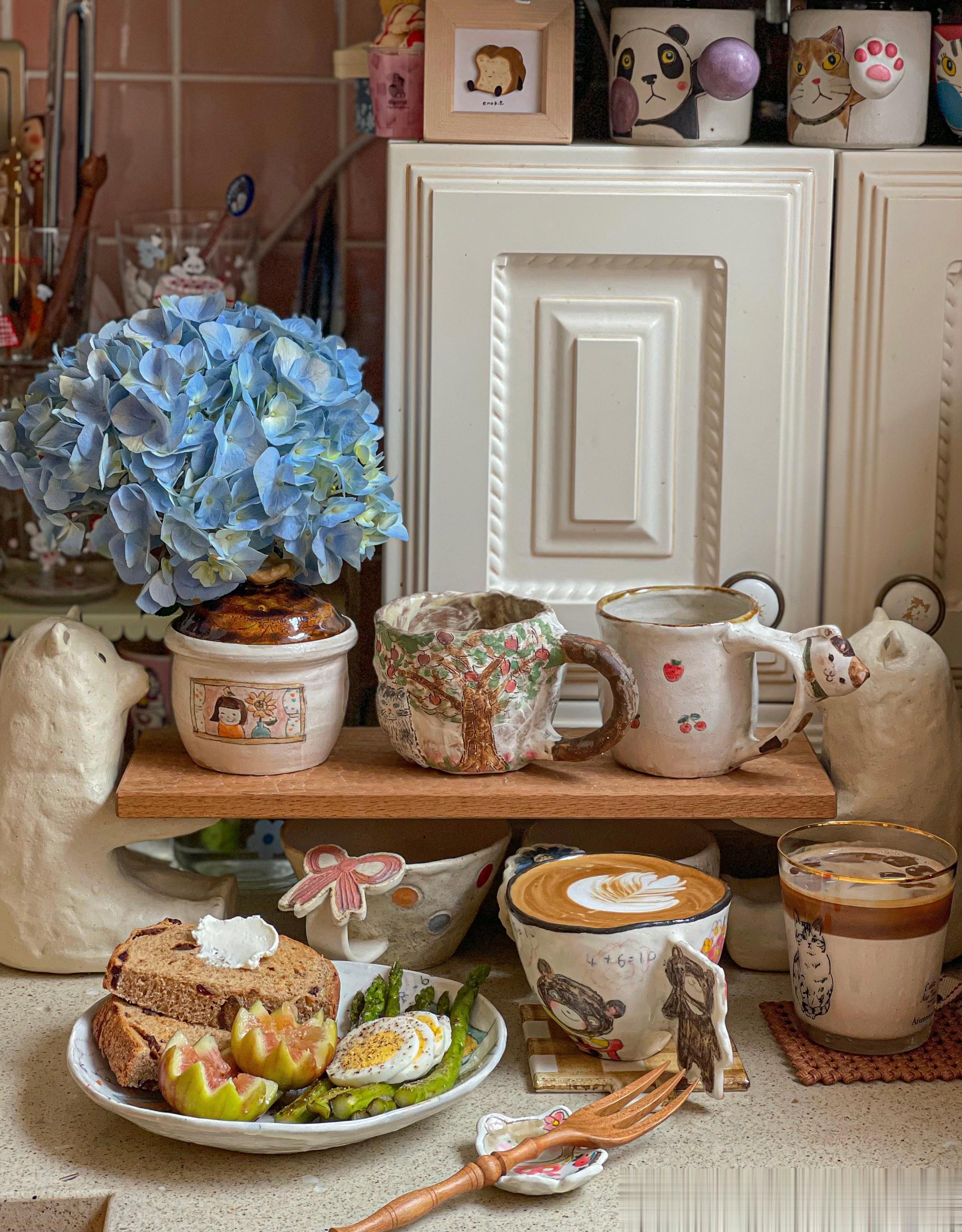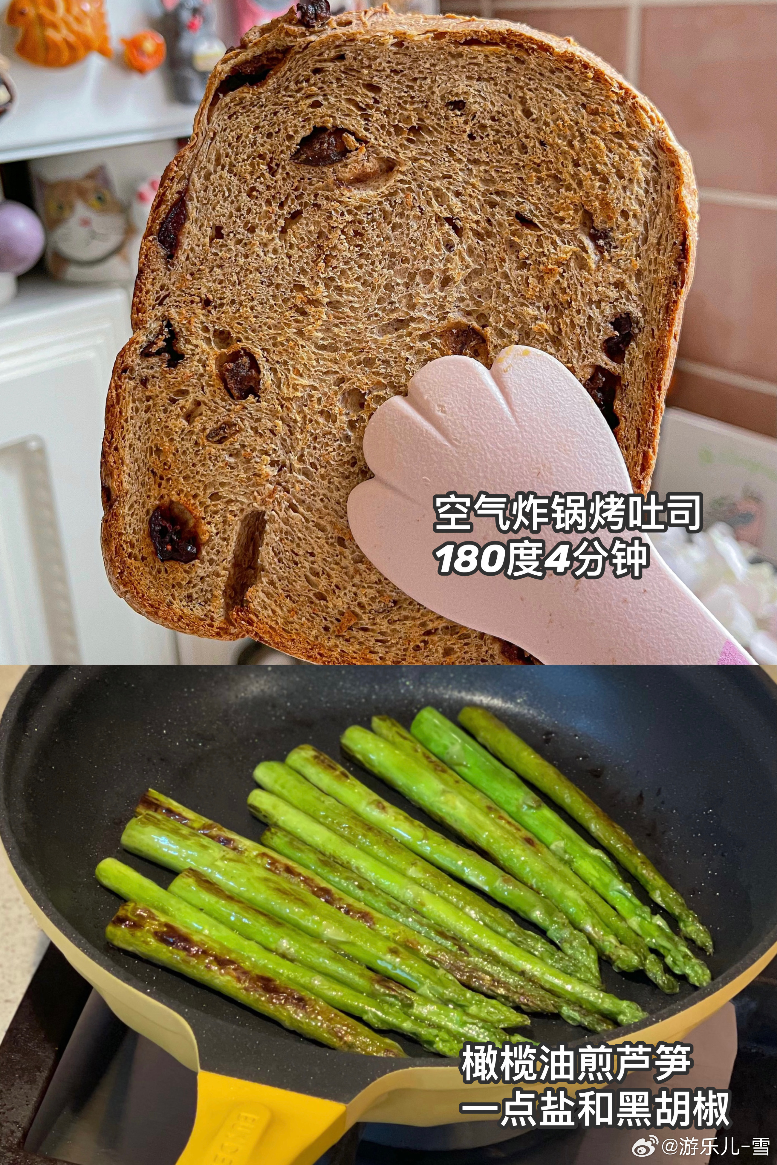 早餐是低脂:全麦吐司+煎芦笋+白煮蛋+无花果+自制咖啡