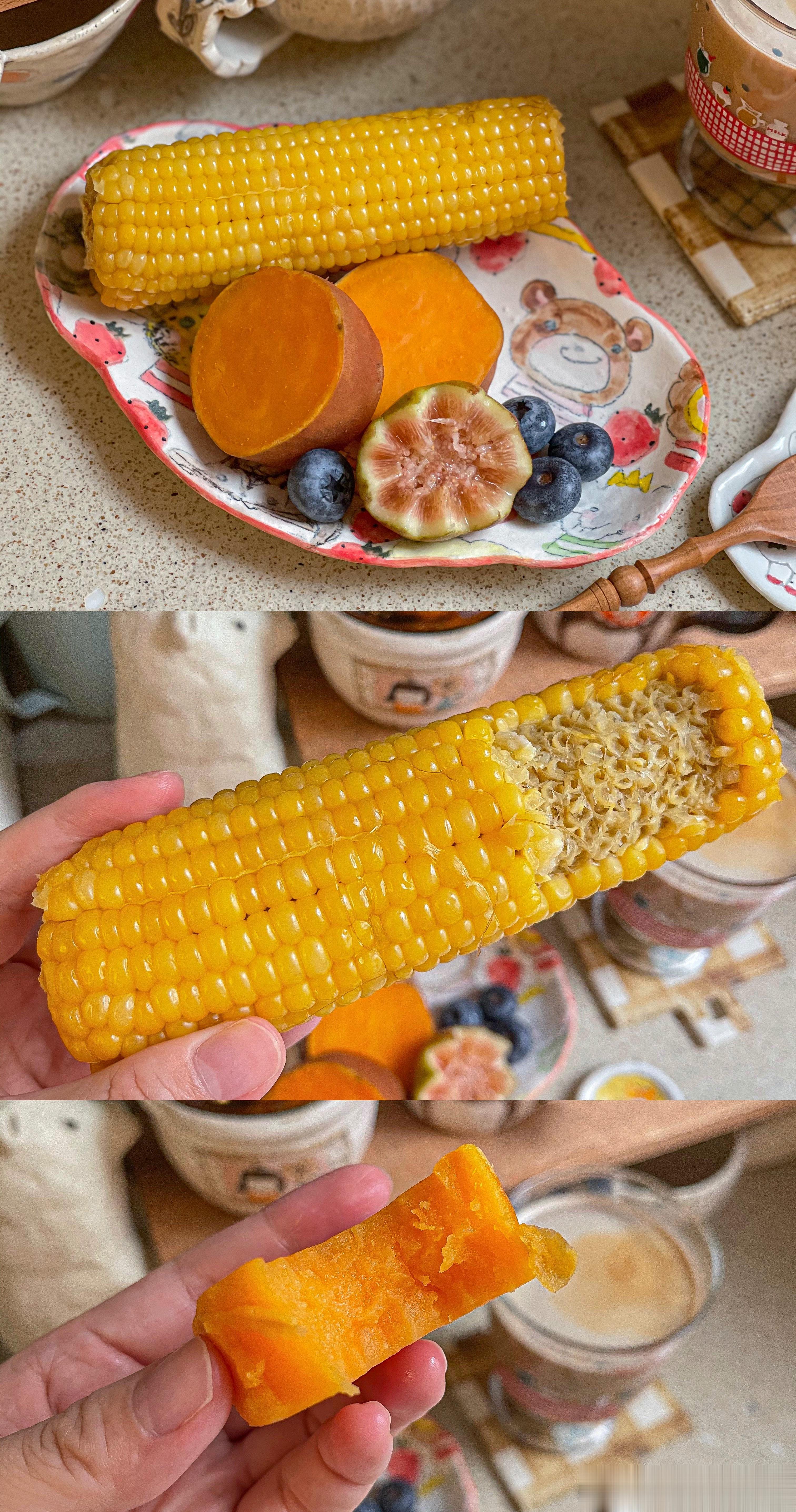 [偷笑]忙碌的早上1.把蓝莓树莓丢进面包机做果酱2.玉米红薯丢进北鼎蒸炖锅蒸上拥