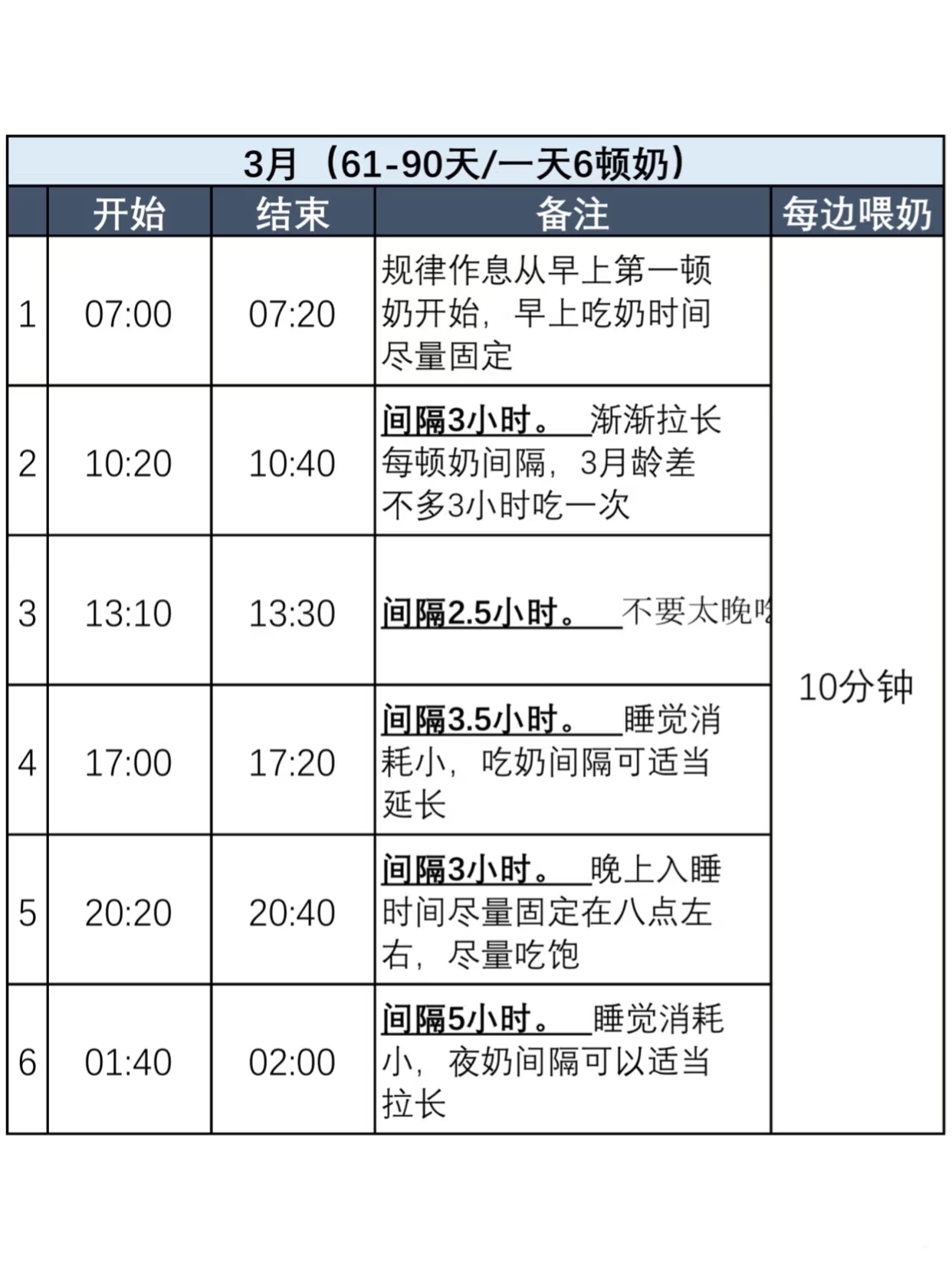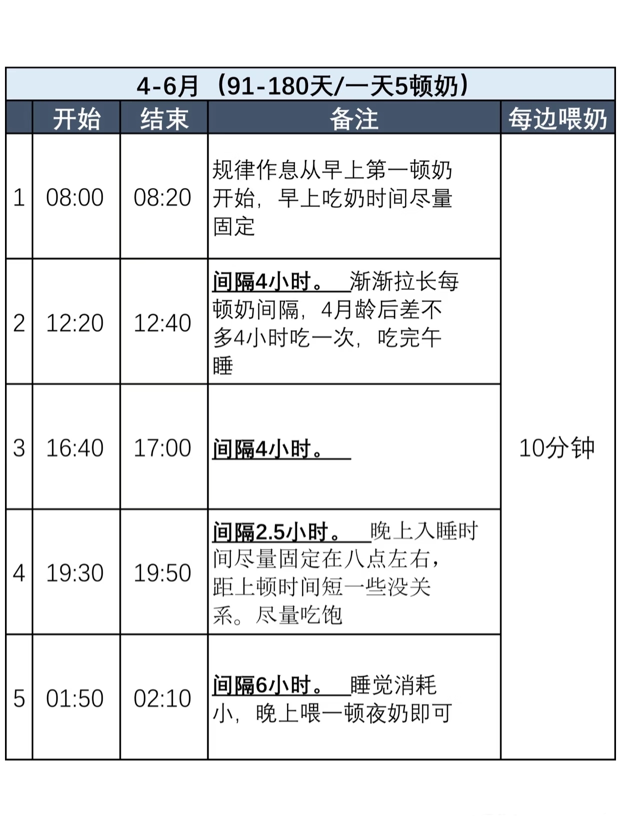· 喂养间隔:逐渐拉长至2.5-3.5小时