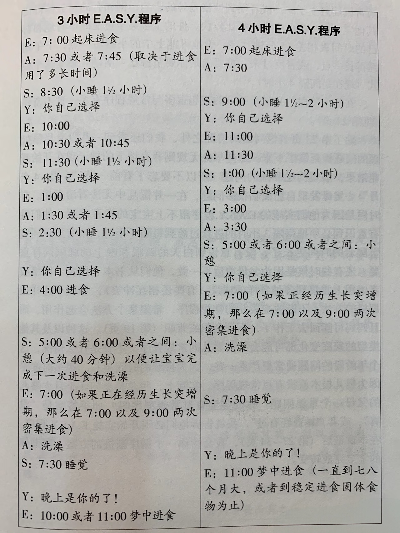 我参考了《实用程序育儿法》这本书,不得不说它给了我很大的启发。不过,这本书只提供了42天和4个月宝宝的作息参考(最后一张图有附上),关于具体怎么喂、怎么从1月龄过渡到2月龄,并没有详细解释。