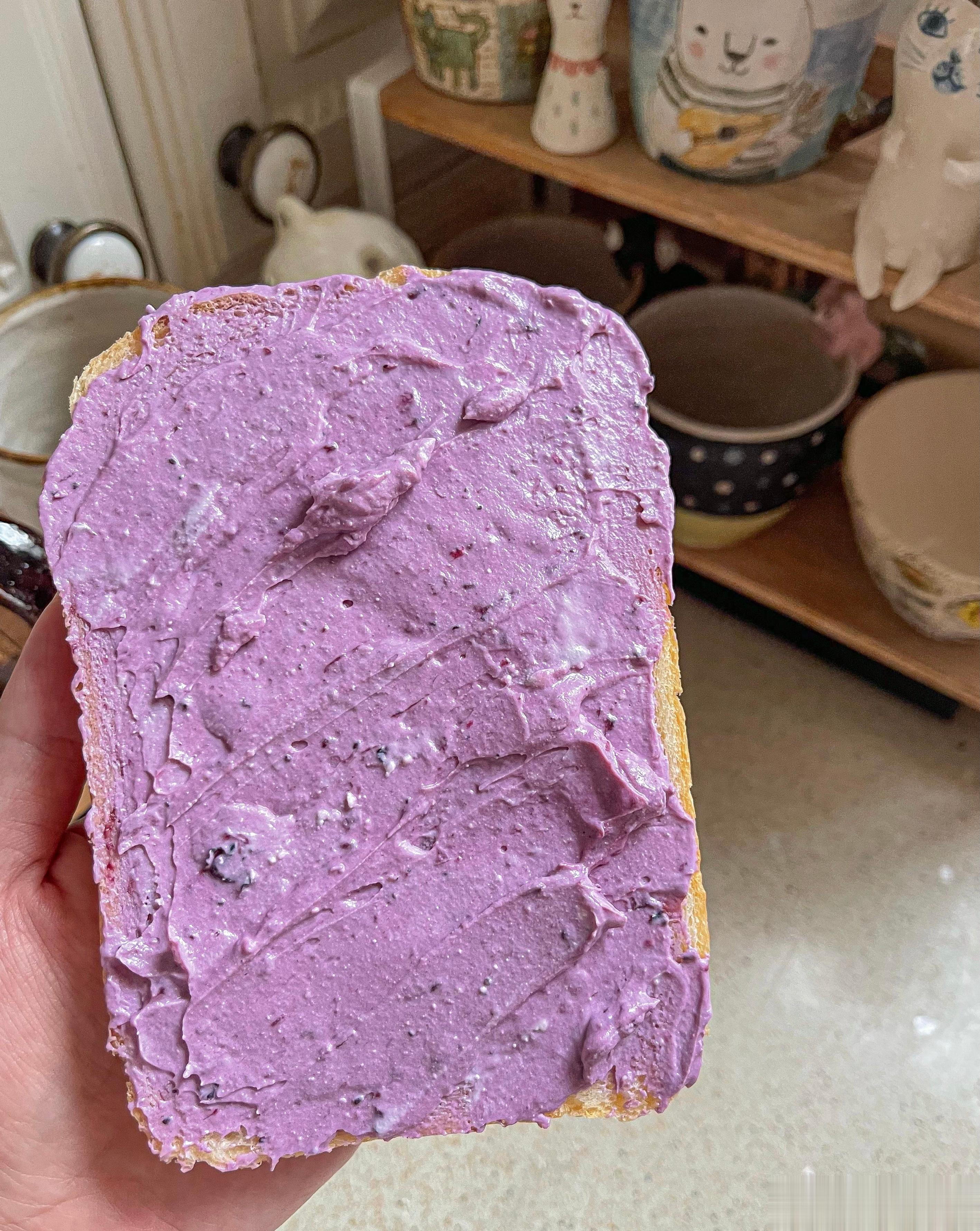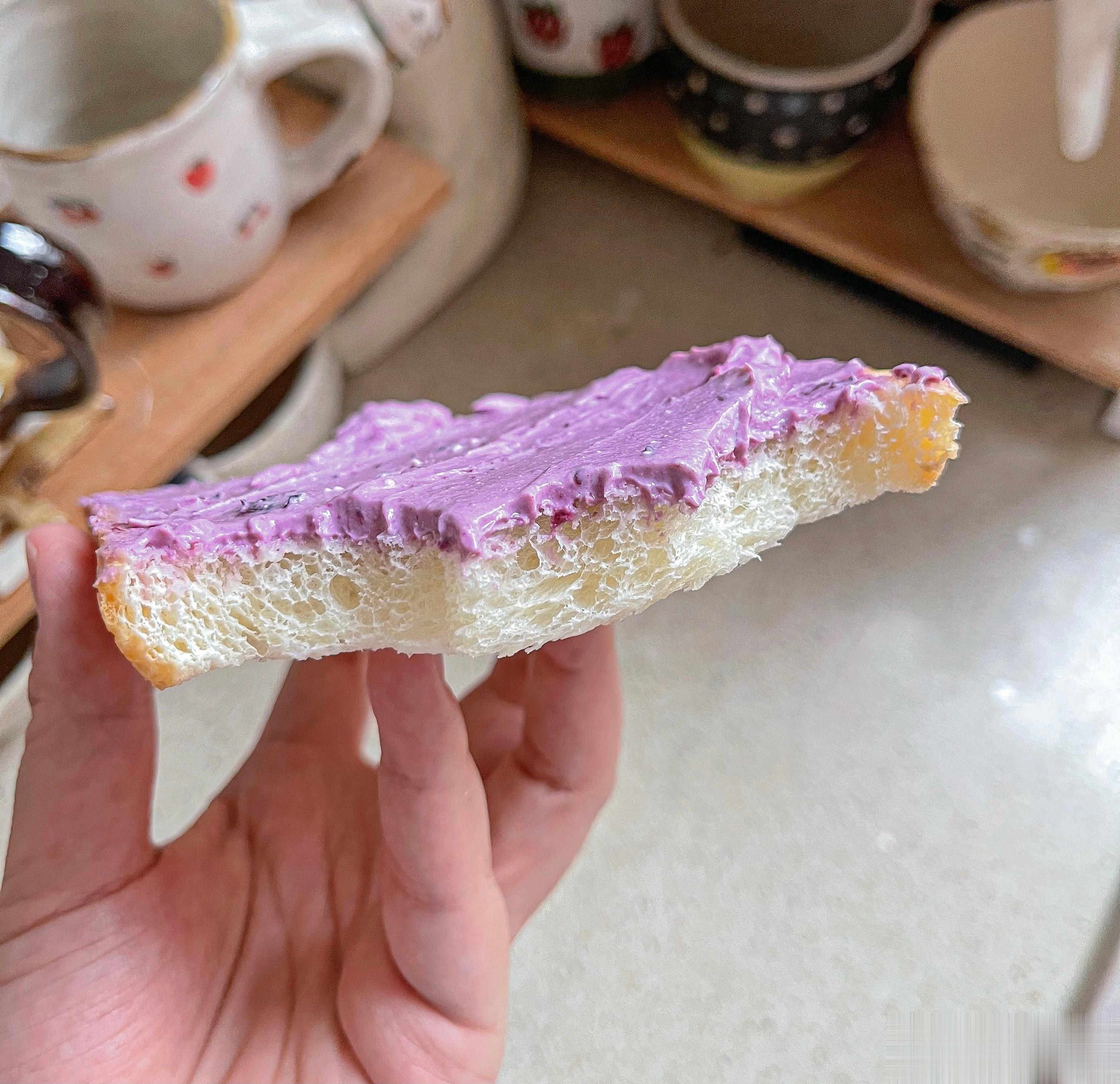 自己做的吐司切片自己做的果酱和涂抹式奶酪拌在一起,抹面包吃这种幸福感谁懂[哈哈]