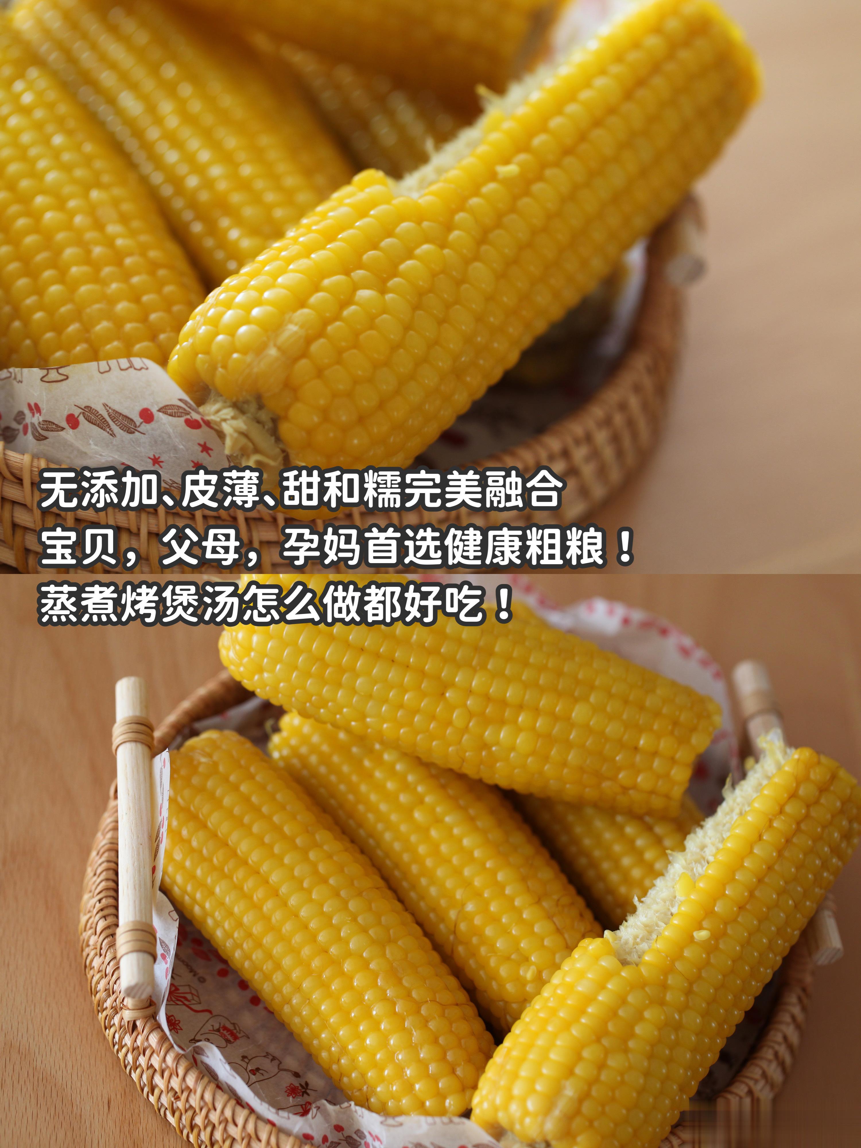 🌽好吃的东北有机糯玉米来啦!微甜不腻,还有着糯玉米的香!打开包装就可以闻到纯天然的玉米香味,绝对是小时候的味道。