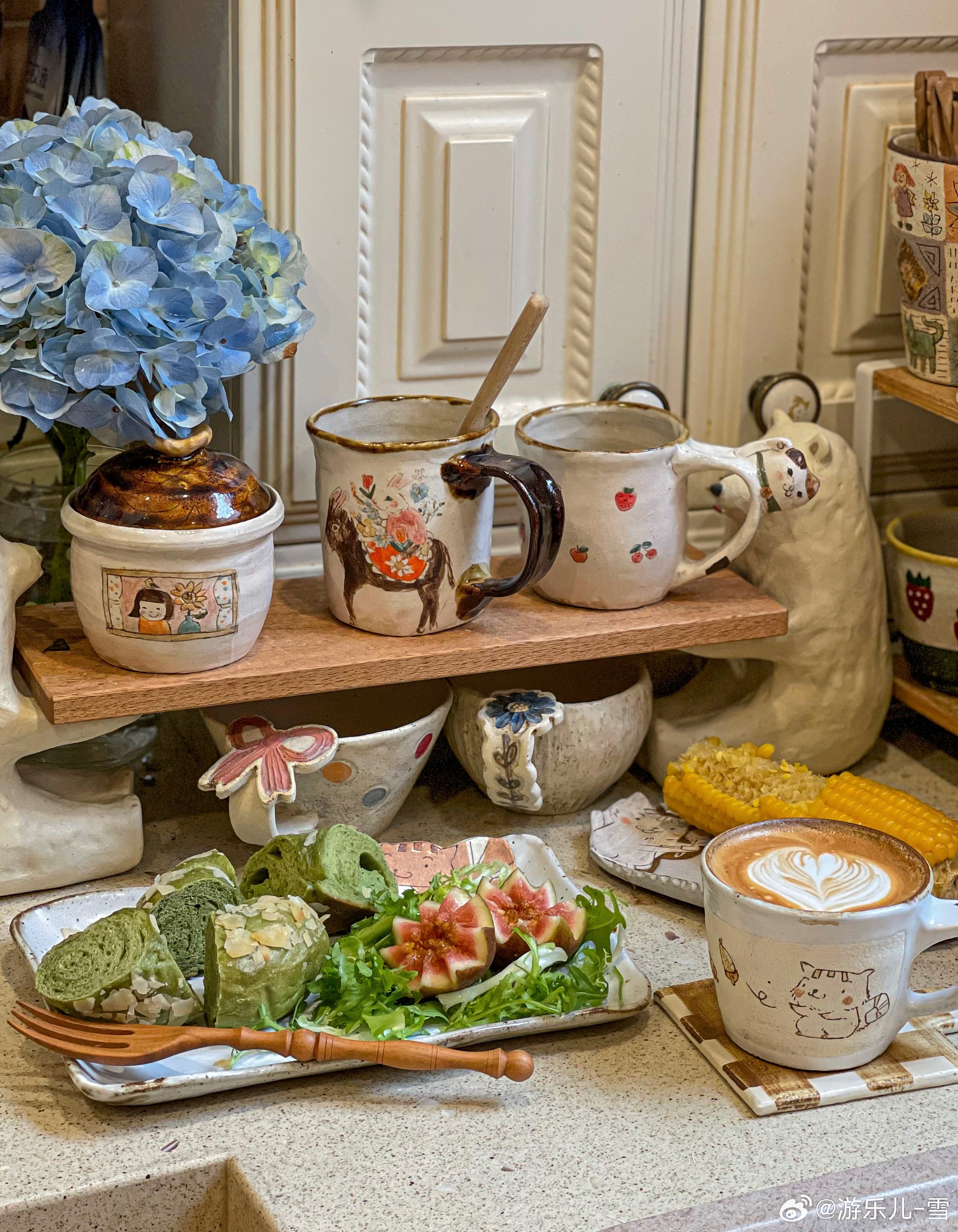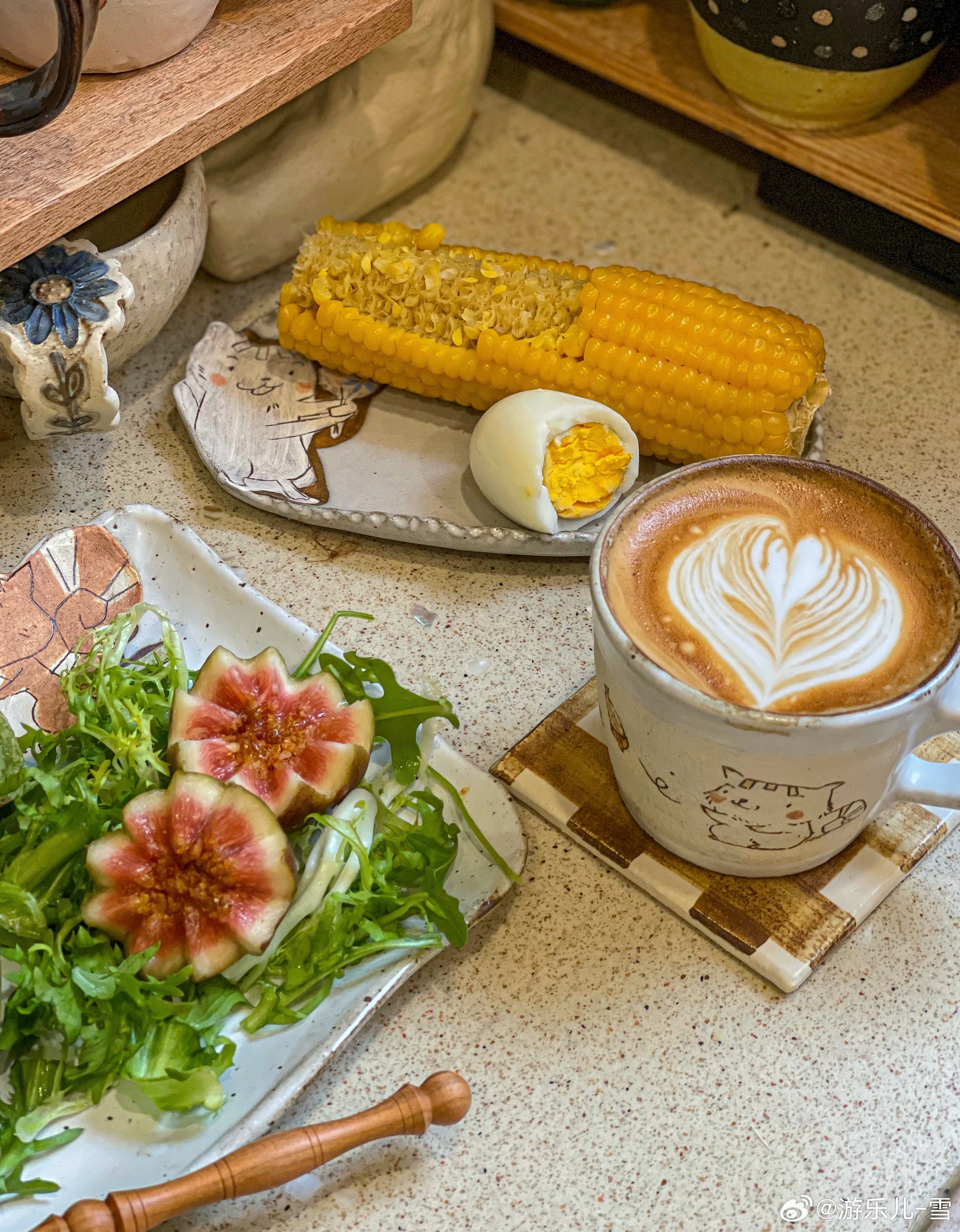 [打call]妈妈给买了无花果超大颗,蒸了有机玉米(已经给大家安排喽),咖啡拉花退步了(肌肉记忆很重要),吃完饭岛岛就会躺在我身上睡觉[哈哈]。