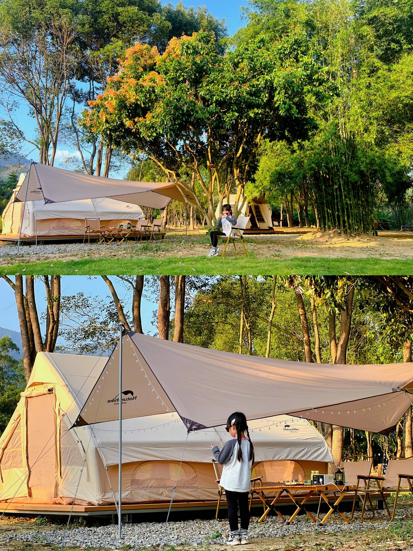 🌈我们的帐篷天幕靠近竹林,拍照绝美,每个帐篷处都配有电源插座,不用担心手机没电的问题。