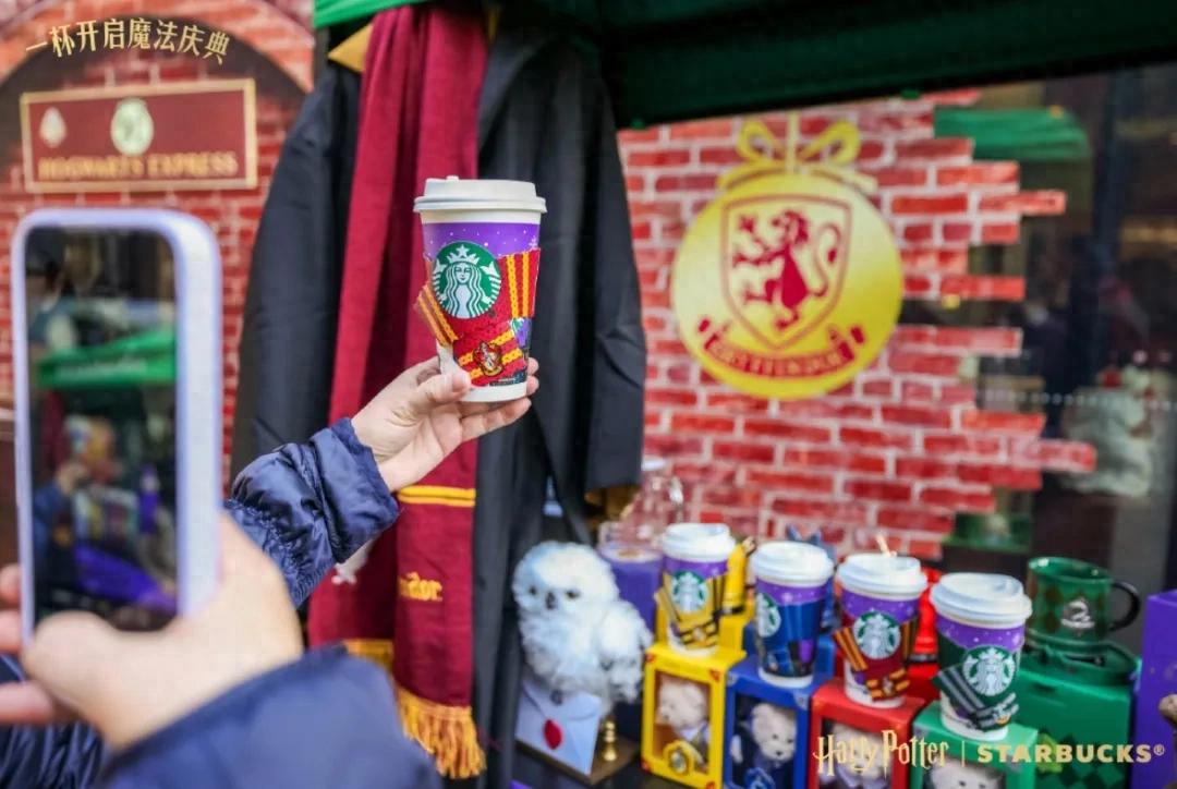 不得不说,星巴克近期和《哈利·波特》的联名,已征服大批“哈迷”:各大社交平台上,“巫师点单攻略”、“梦回霍格沃茨”等话题陆续刷屏;广州沙面、天津恒隆等主题店人头涌动,不少人凌晨赶来排队、跨市跨省打卡;周边产品大受欢迎,联名马克杯上市首周即售罄。