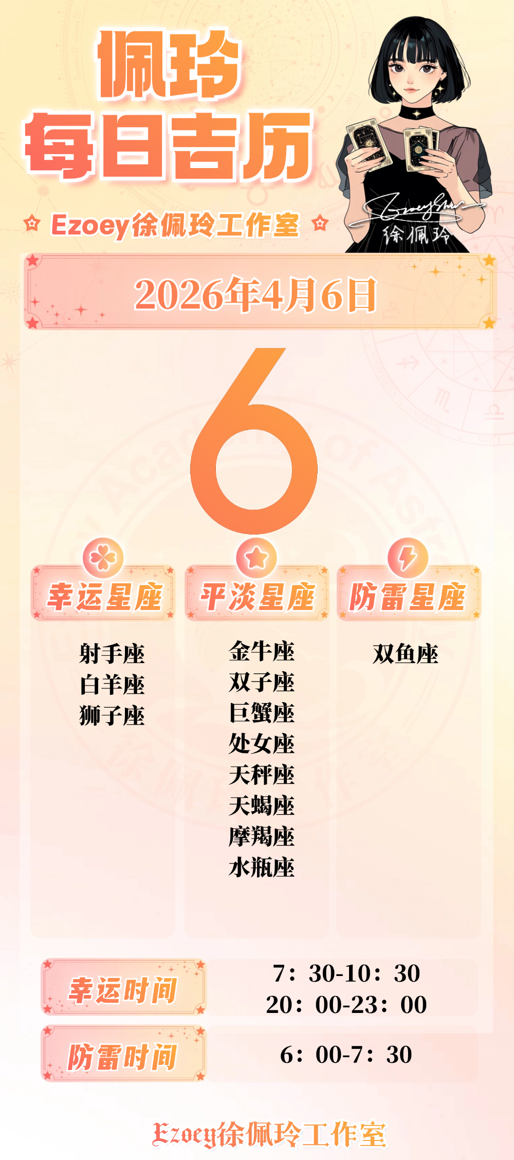 【4.6日播报】乐观助力日 幸运星座:射手座、白羊座、狮子座——Ezoey徐佩玲26年星座播报