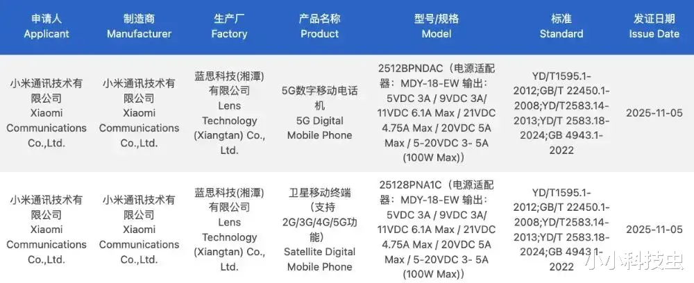 根据最新入网认证,小米17 Ultra及其卫星通讯版已完成认证。全系标配UWB超宽带和100W闪充,实用性大幅提升。