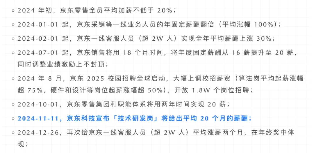 2024年,京东宣布涨薪时间线: