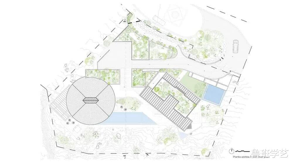 外观犹如茅草屋在现在建筑中,然而茅草屋的造型确是这里最亮眼的存在,屋顶上方便是公路,这是地理优势而营造出的惊讶设计。