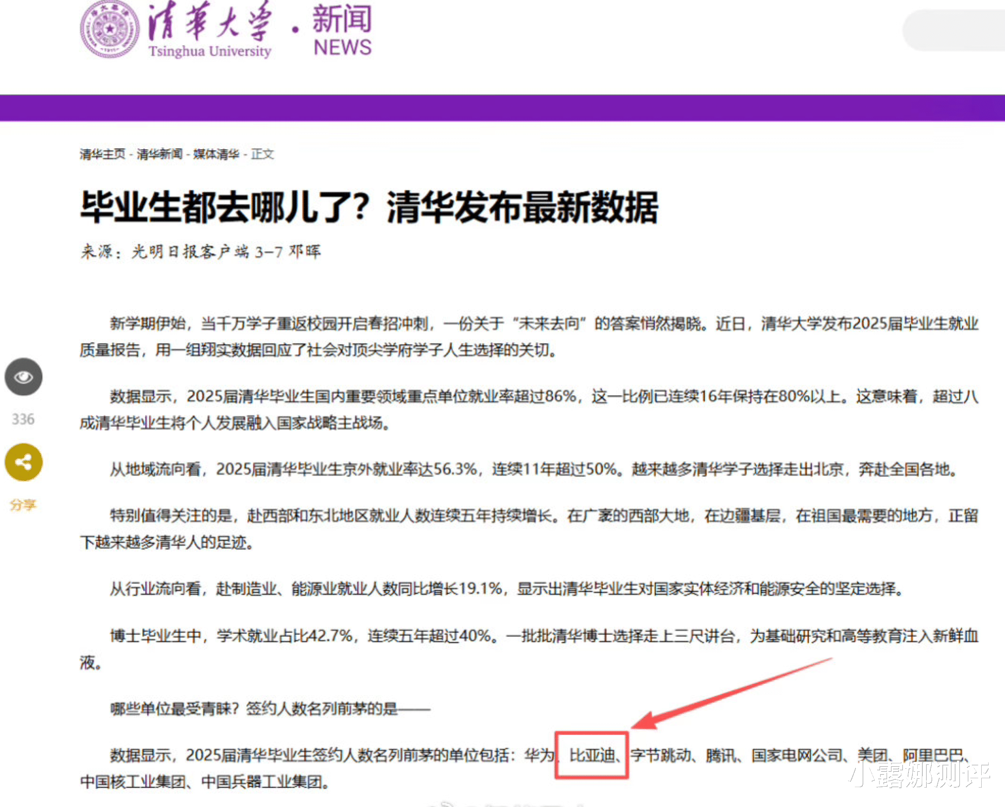 清华2025届就业数据出来了,我直接看愣了——比亚迪,民企就业榜Top2!而且是唯一杀进前列的新能源车企。