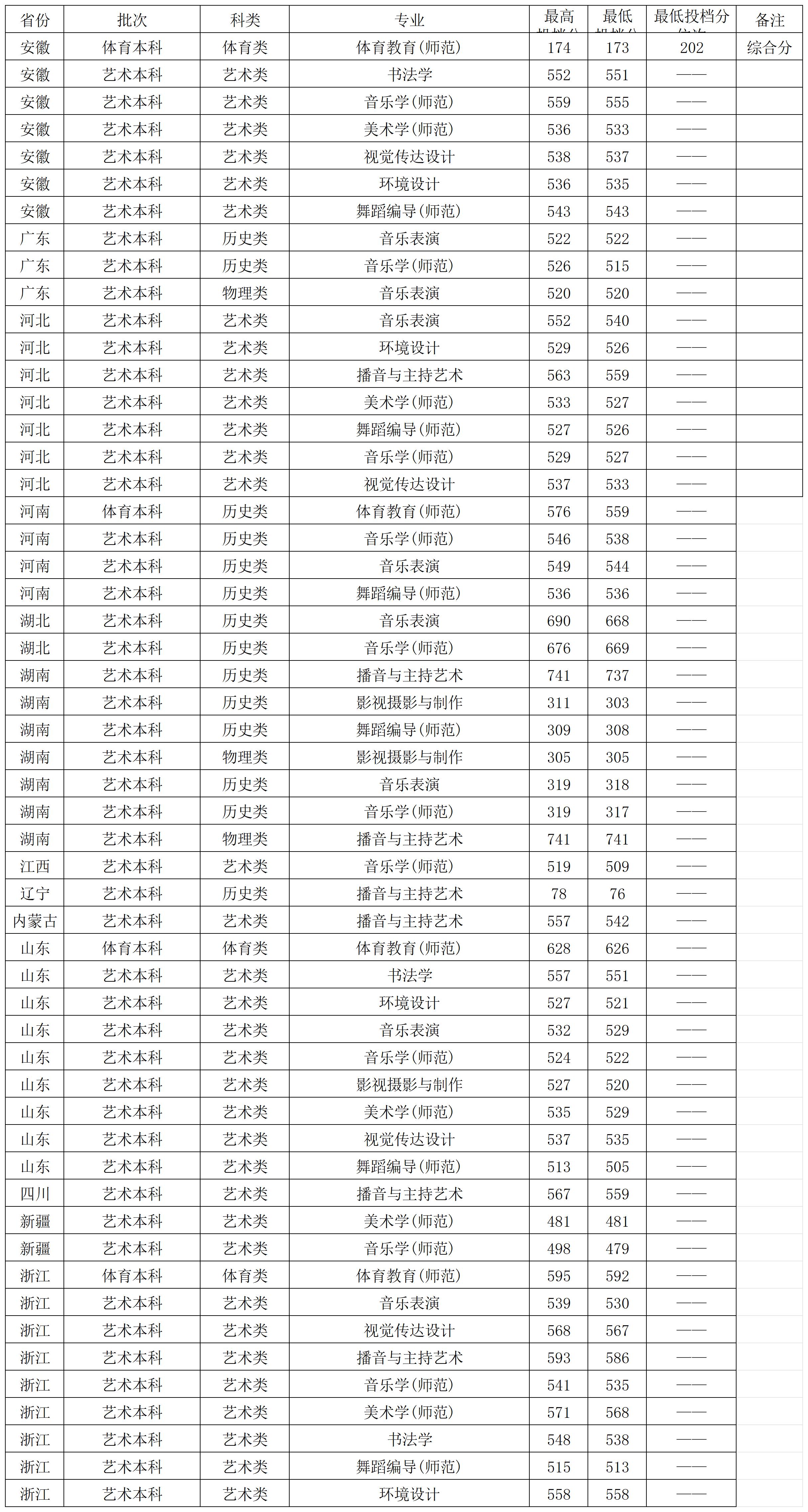 江苏师范大学2025年艺术、体育类在各省各专业录取分数线