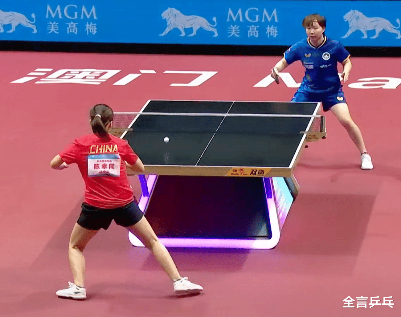 比赛开始后,陈幸同在首局便陷入被动,虽然速度、力量、旋转不输朱雨玲,但在台内控制与抢攻、回球落点与线路上相对逊色一筹,随时以6-10落后被对方拿到4个局点,紧接着正手位空档被突破6-11落败先丢一城。
