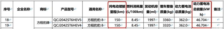 工信部最新一批新车申报目录中,新款方程豹豹8的信息赫然在列,作为品牌旗下的中大型硬派SUV,此次申报车型最核心的变化在于动力电池部分,其搭载的电池组容量提升至46.7kWh,在WLTC标准下的纯电续航里程达到了150公里。这一变动,结合其本身具备的2.0T插电式混合动力系统,预示着其在纯电出行和综合能耗方面可能会有新的表现。