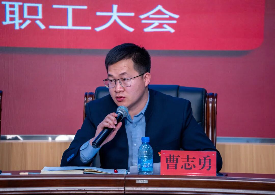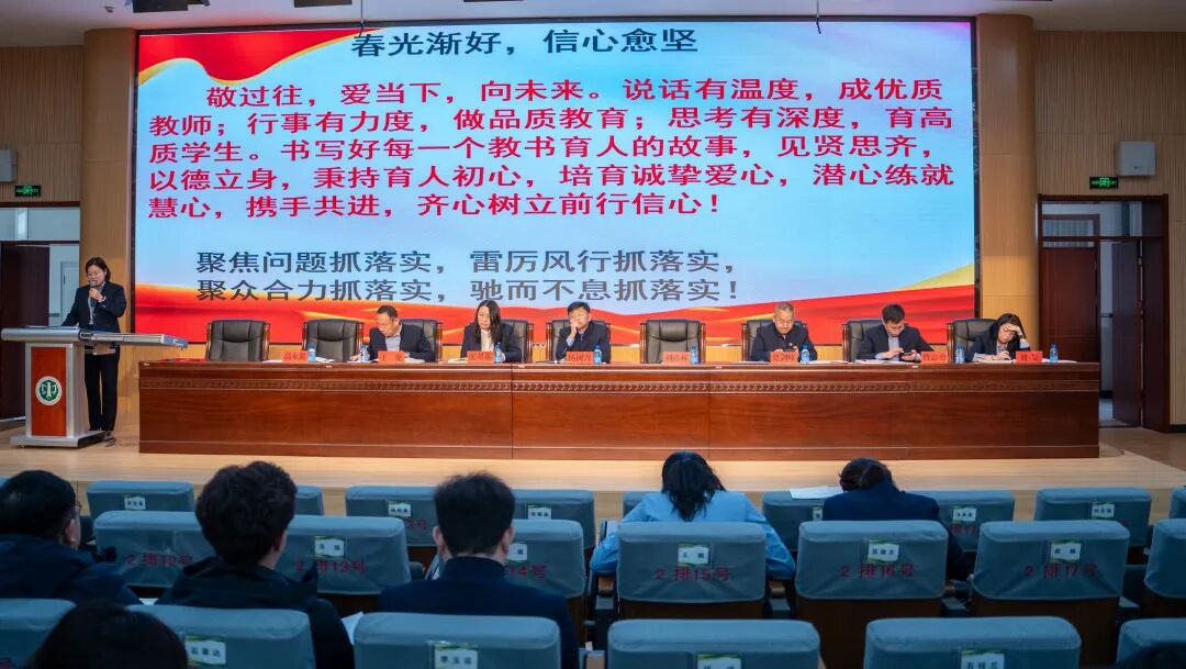 大会第八项,校长杨树青同志就学校整体工作作总结发言。他从学校发展的高度出发,明确了新学期重点目标,要求全体教职工锚定方向、团结一心,以“滋育若川,成骏笃行”的信念,给予每个生命骐骥驰骋的力量。