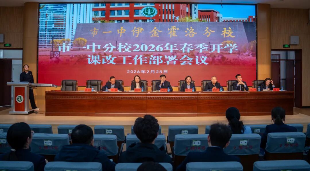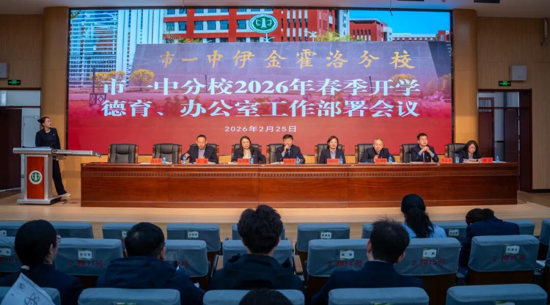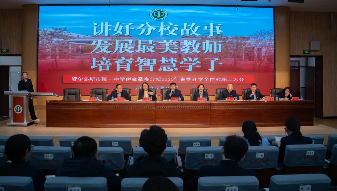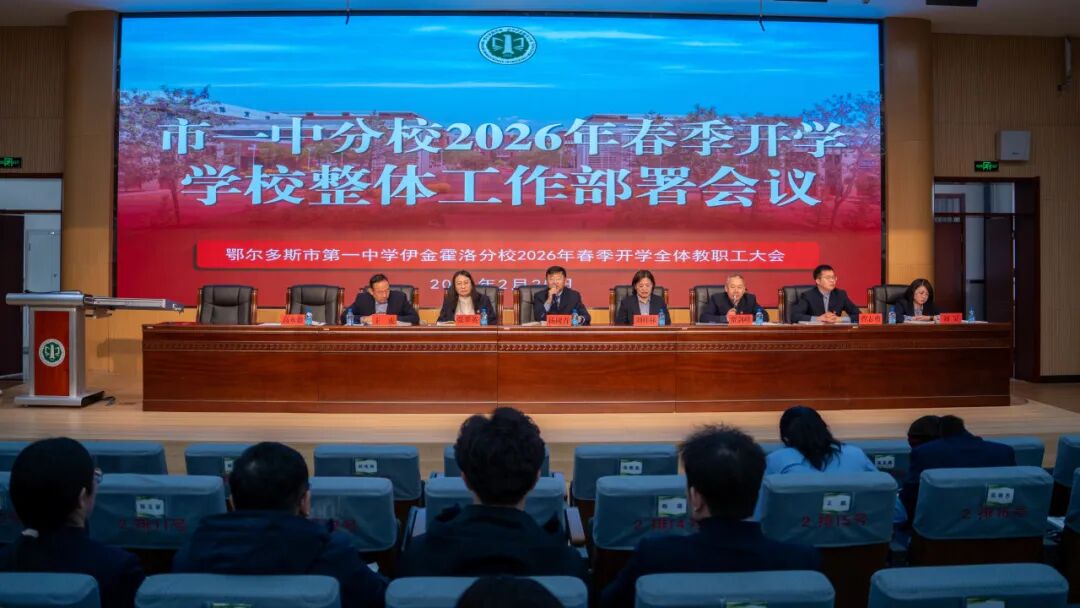 等闲识得东风面,万紫千红总是春。 为进一步凝聚共识、擘画蓝图,激发全体教职工以饱满的热情投身新学期教育教学工作,2026年2月25日上午,鄂尔多斯市第一中学伊金霍洛分校隆重召开了以“涵养生态,智慧育人,让每位师生成长为最好的自己”为主题的春季开学全体教职工大会。全体教职工及明喆物业部分领导参加会议,大会由校长杨树青同志主持。