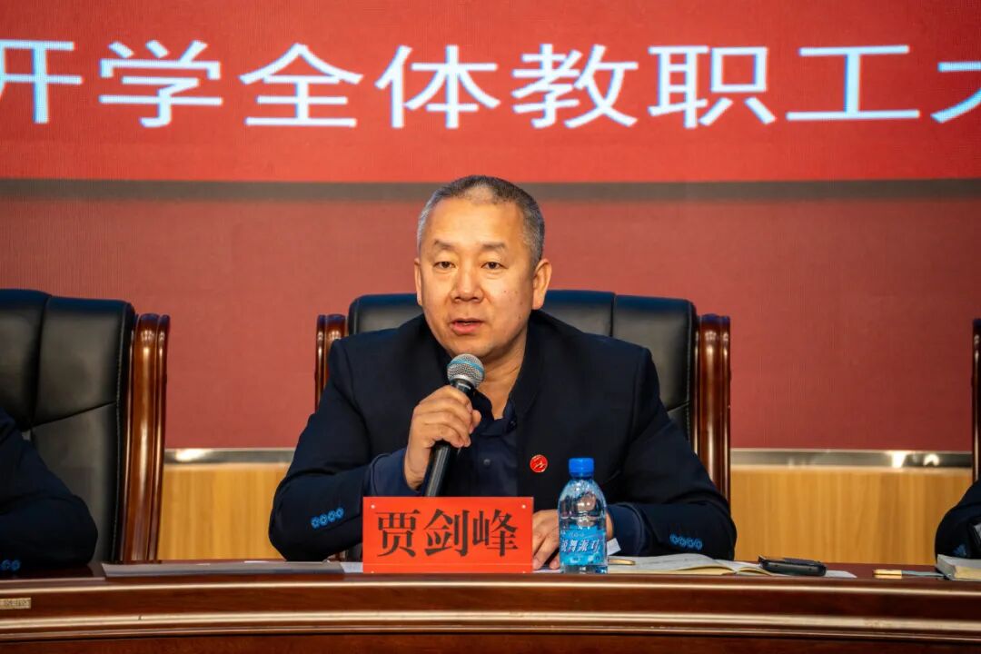 大会第六项,副校长兼办公室主任高永鑫同志就新学期德育思路、安全工作、职工考勤、职称评审等重点工作进行了强调。他提出,德育为首,安全为重,要构建全员育人、全程育人、全方位育人的工作格局。