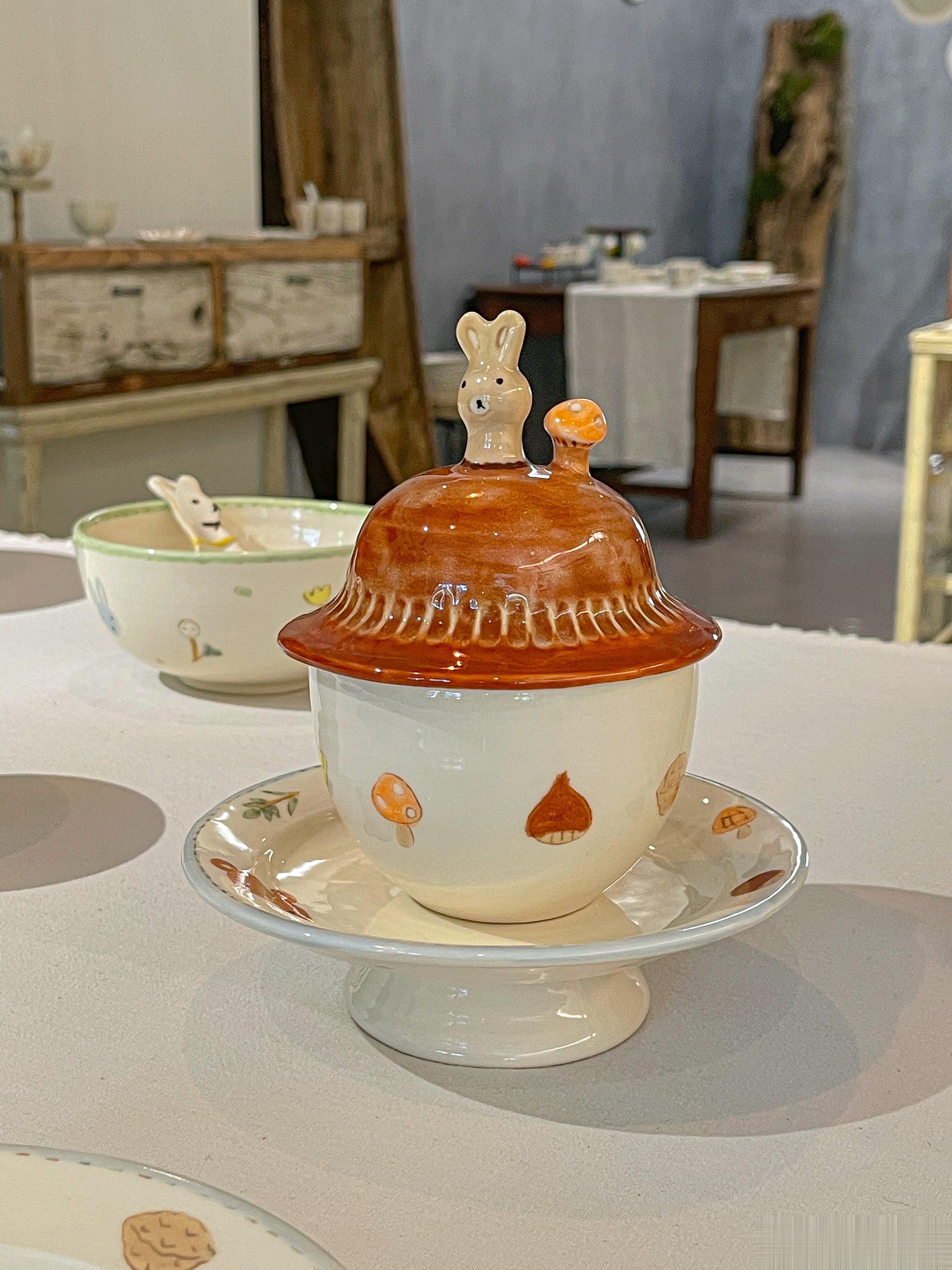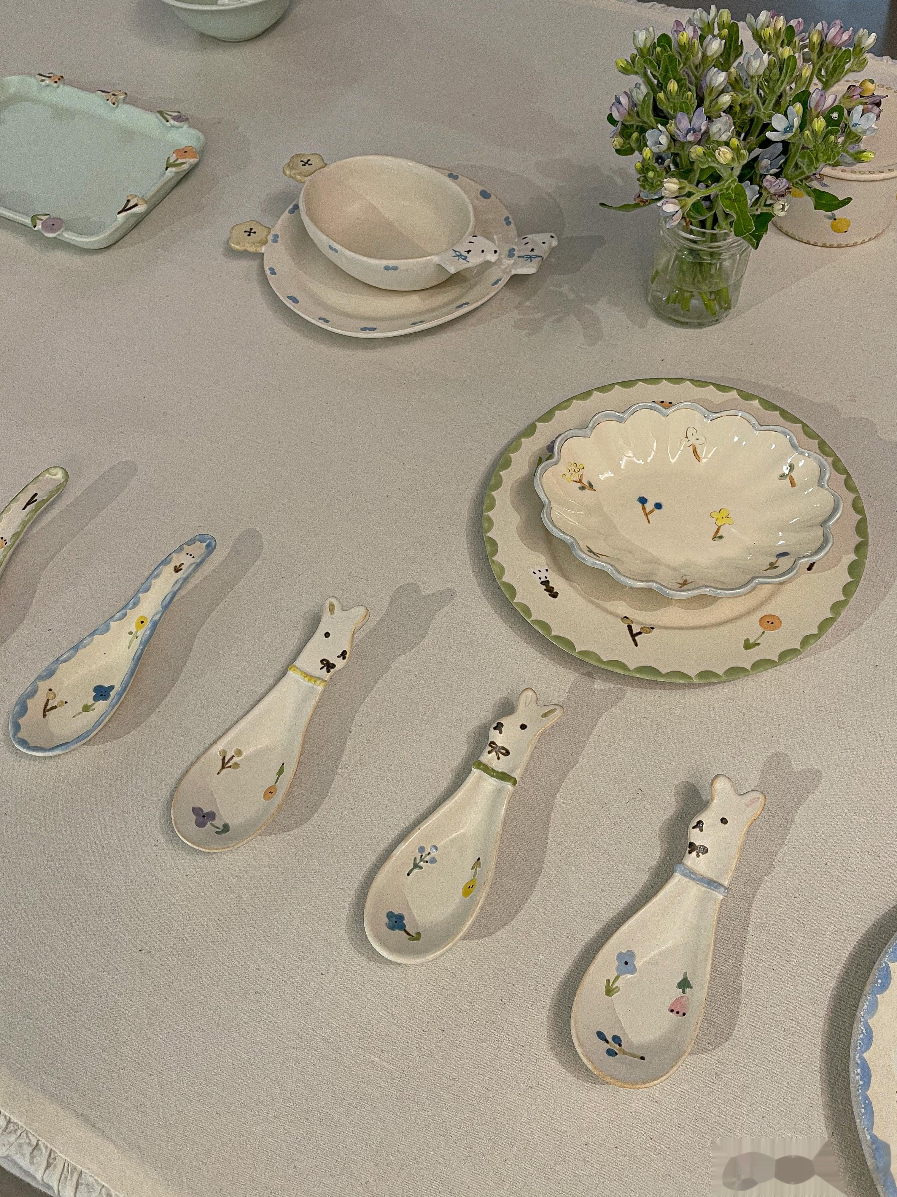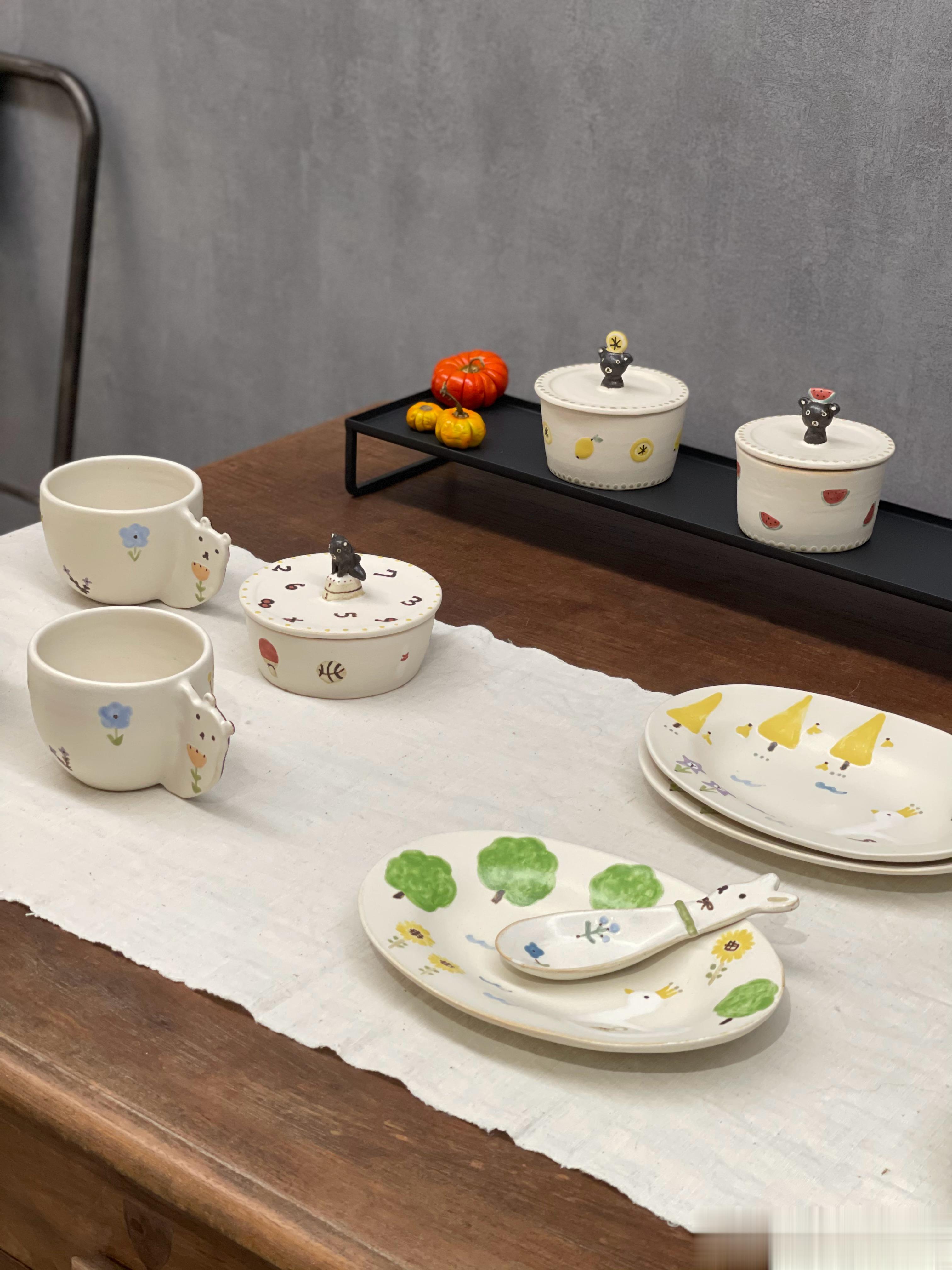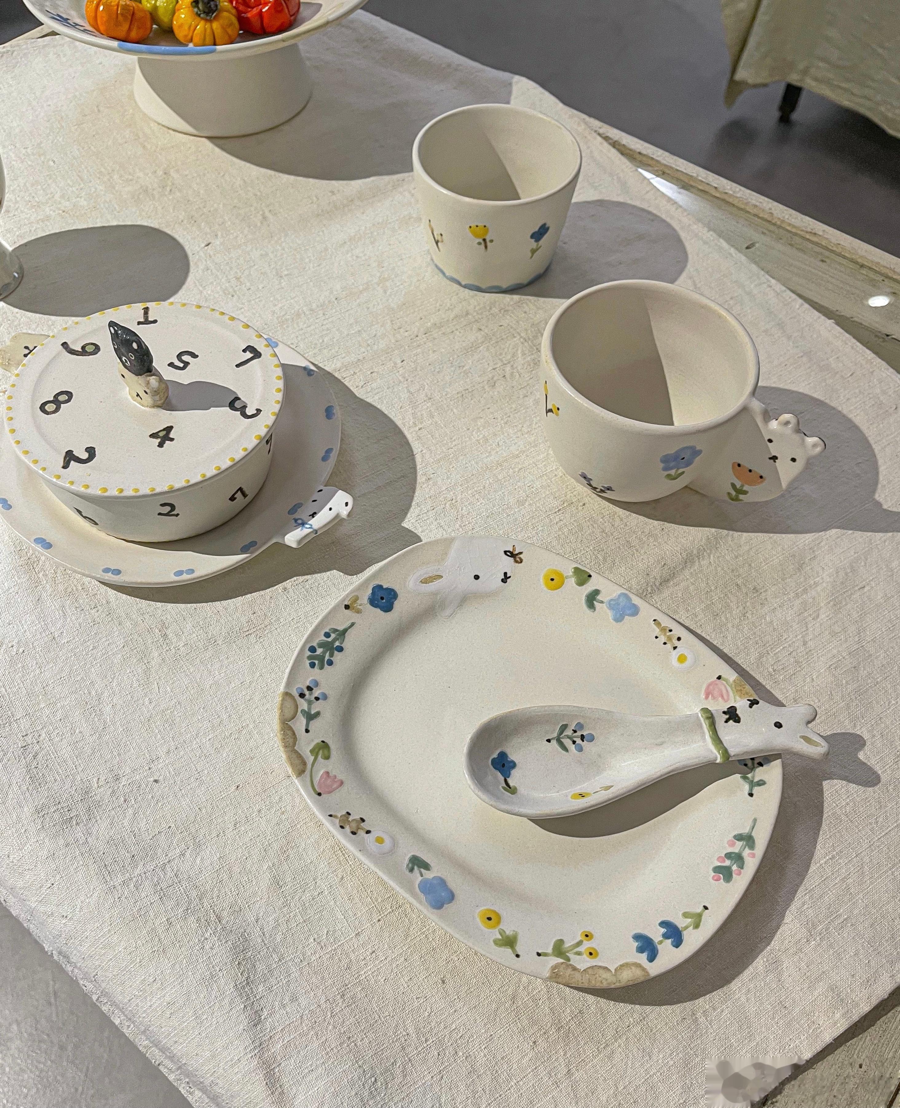我第一次看直播,代购的就是这位作家,当时我还不知道她,就觉得有花花和动物,加上可爱的花边,很温暖,甜甜的、童话世界一样的餐具。收到后的手感很喜欢,奶油一样滑滑的。