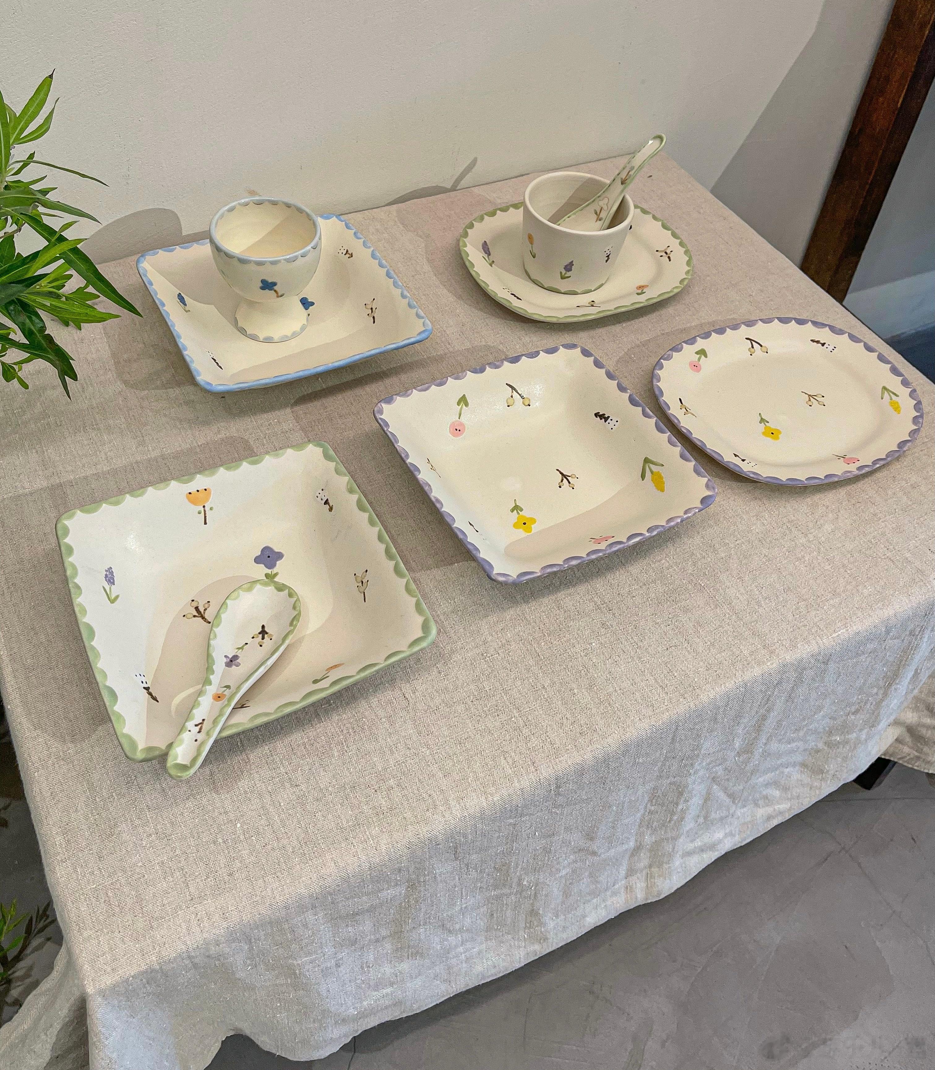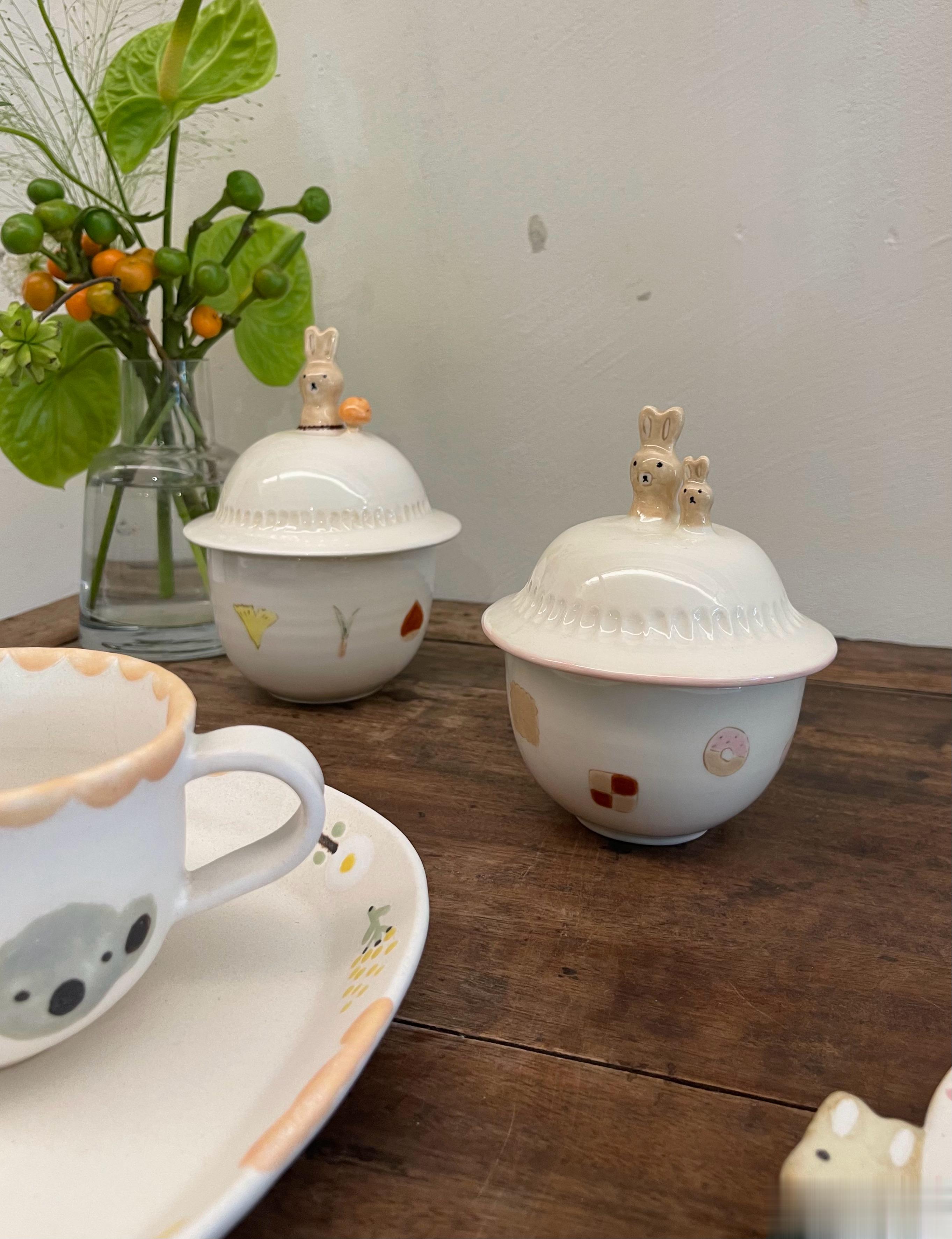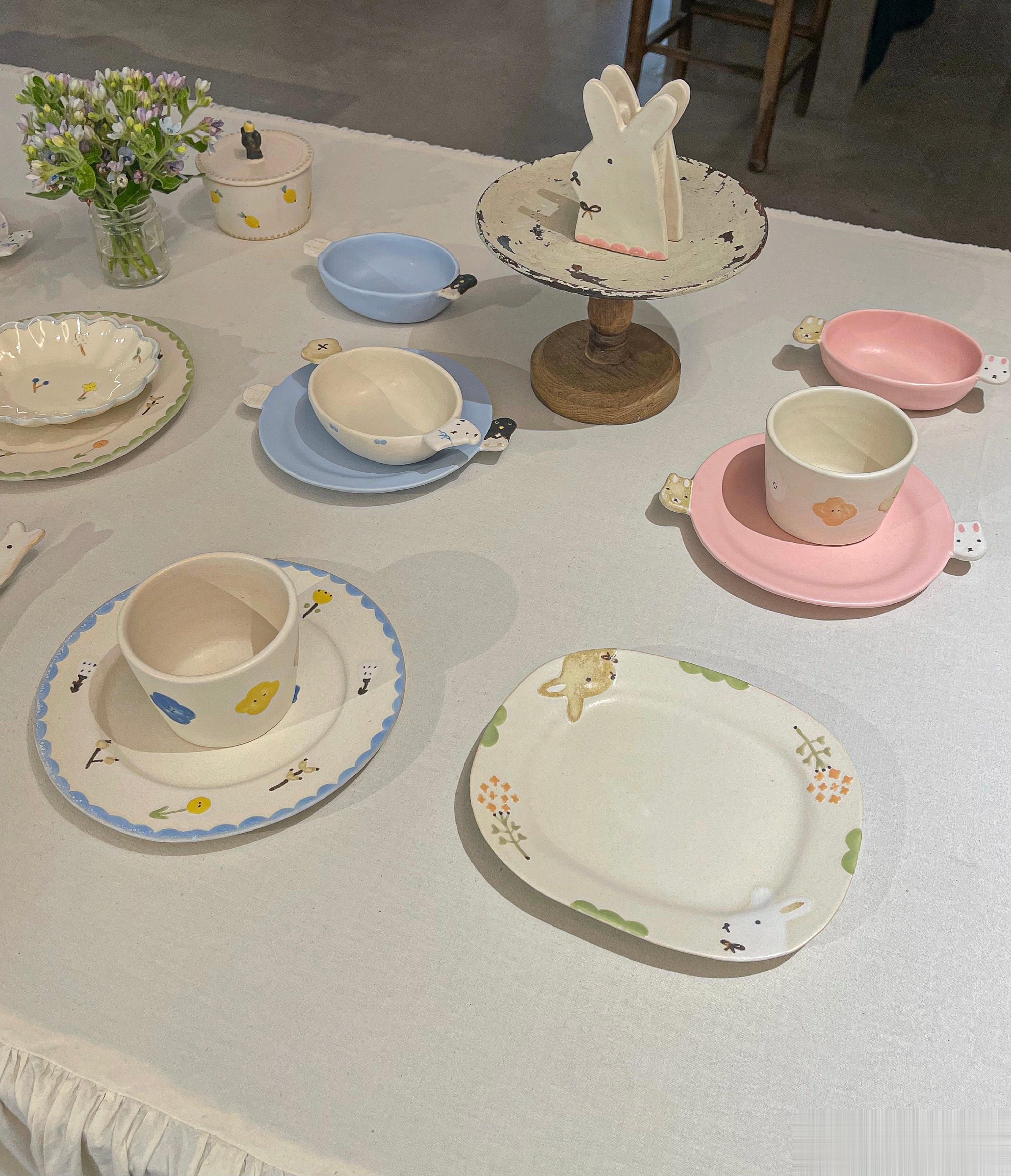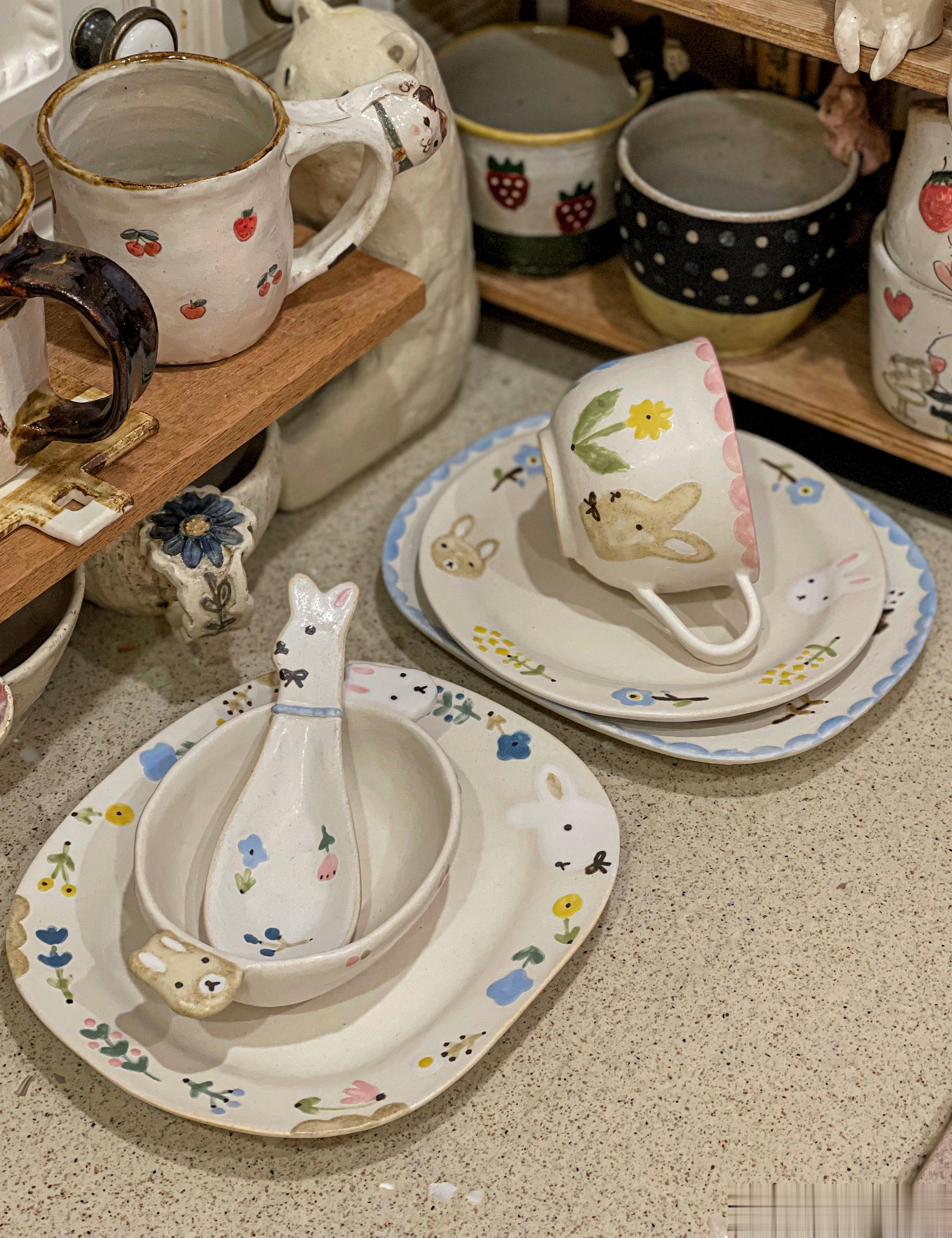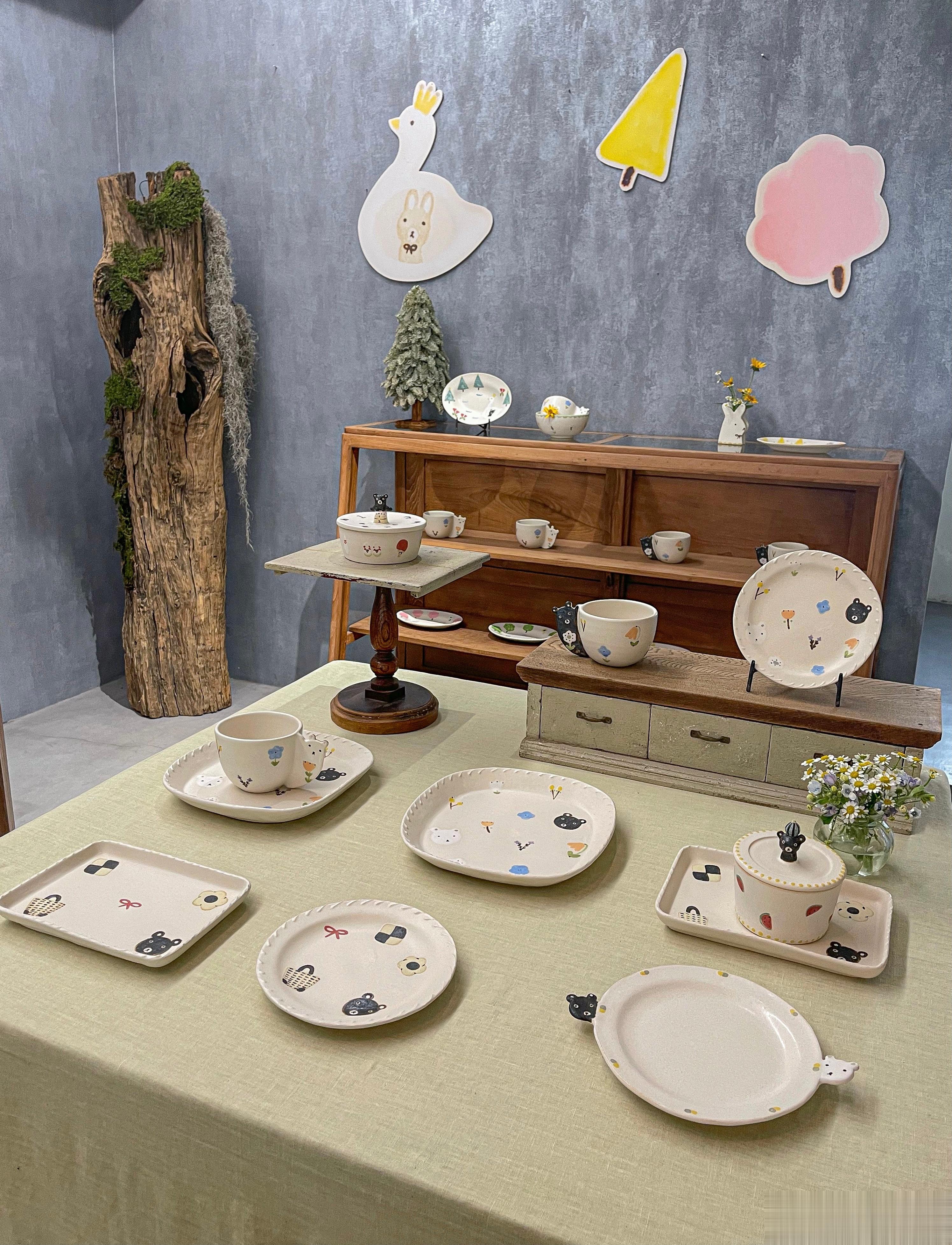 我第一次看直播,代购的就是这位作家,当时我还不知道她,就觉得有花花和动物,加上可爱的花边,很温暖,甜甜的、童话世界一样的餐具。收到后的手感很喜欢,奶油一样滑滑的。