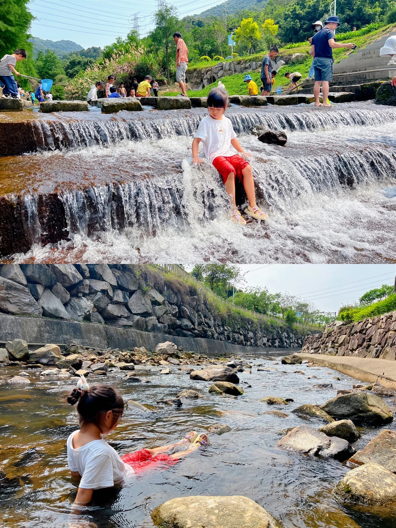 ✅需要走一小段楼梯上去,一路上有很多溪流,可以就近找一块给孩子玩水。