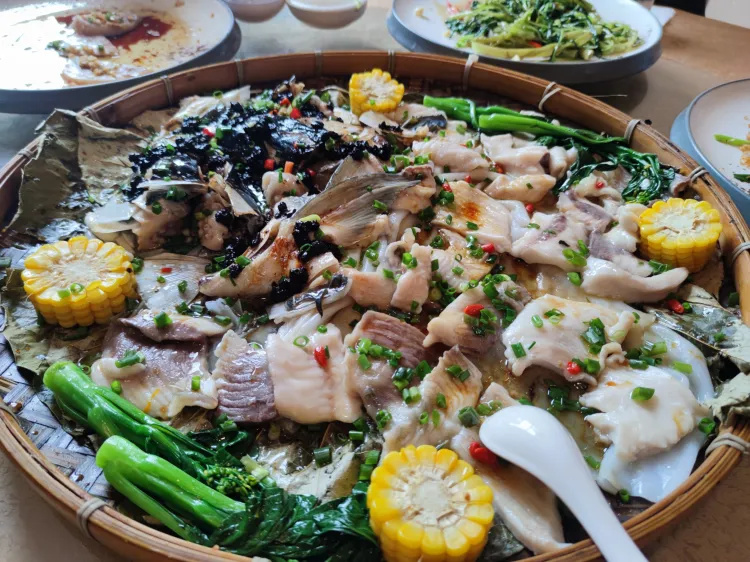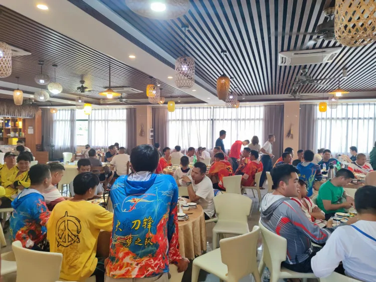 吃饭的时候,透过窗外看到不少钓鱼客不停上钩,看来鱼量不少。