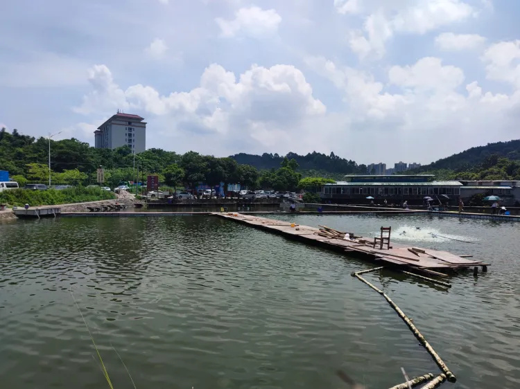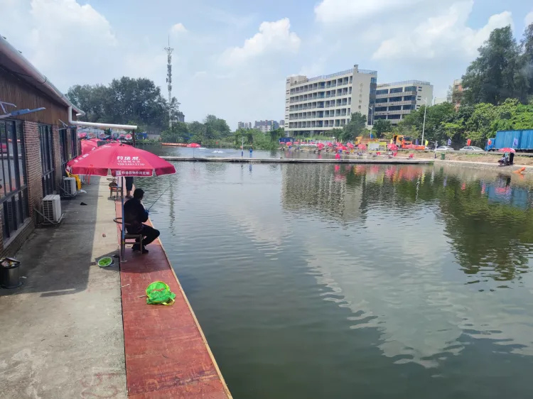 开车到了现场,超大钓鱼池,不少钓友顶着炎炎夏日也在钓鱼。
