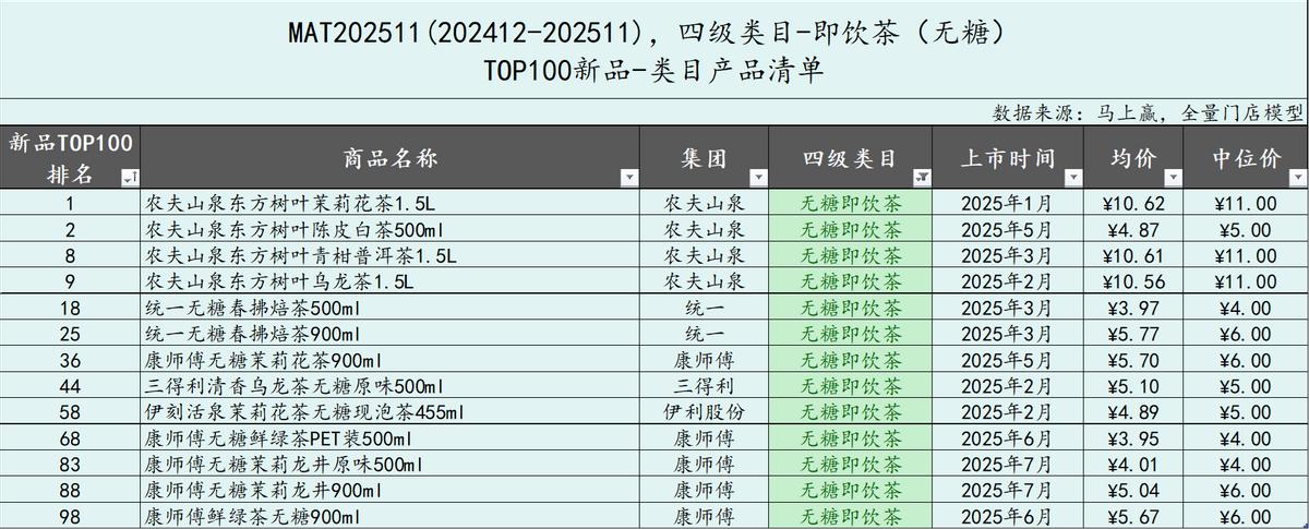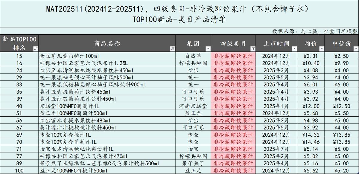 2025年已经接近尾声,未来两周马上赢情报站也将开启“年终盘点模式”。与往年类似,今年的年终盘点系列依然从饮料新品开始,通过回顾2024年12月-2025年11月饮料市场的TOP100单品,以及与上一年同一时间段的对比,来观察在过去一年,饮料市场有什么新的趋势与走向。在下一周,我们将对饮料各类目中的TOP集团及其份额变动进行盘点,敬请关注!