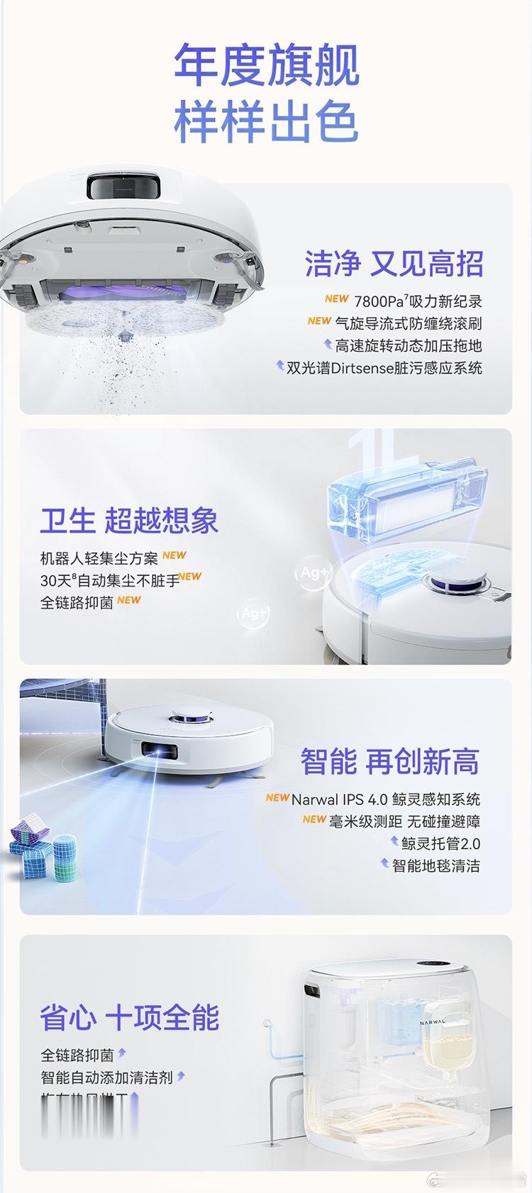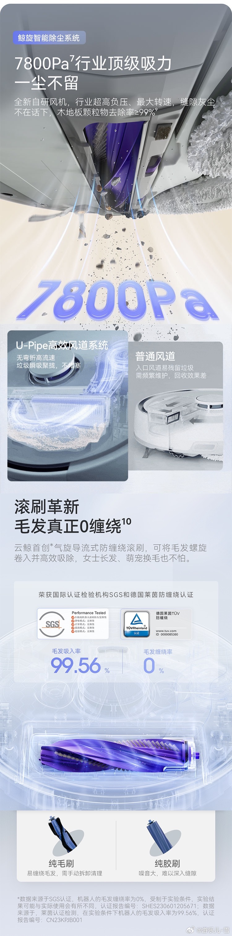 👏7800Pa大吸力+毛发防缠绕+30天免倒垃圾+双结构光避障
