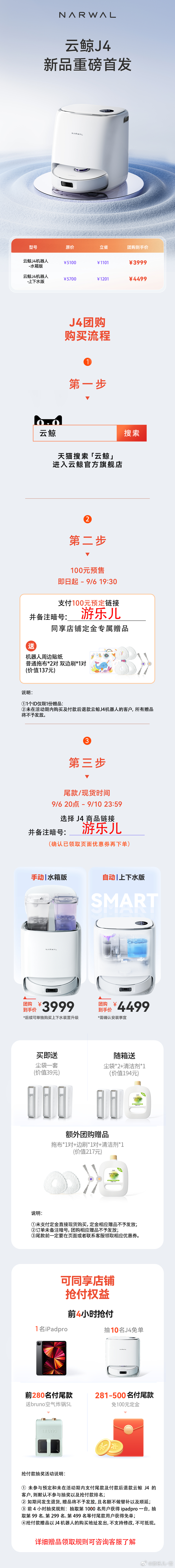 云鲸J4第四代扫拖一体扫地机器人!来喽!