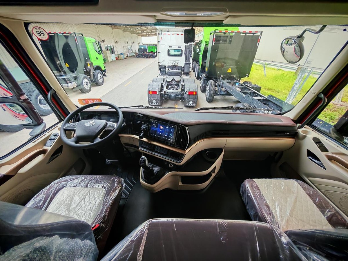车辆高颜值驾驶室,融合东方美学与“聚宝盆”前脸设计,寓意财源广进,为卡友的创富之路送上美好祝福。全新升级的高维设计后视镜,视野更佳、风阻更低。内饰采用乘龙HK高端旗舰车型同款造型与套色方案,视觉与触感全面进阶,让卡友在创富路上尽享尊荣。