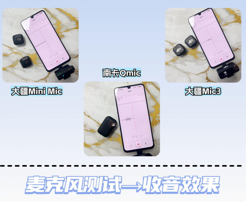 ③大疆DJI Mic3:采用双麦拾音与基础智能降噪系统,对一般环境噪声如风扇声、人群背景音抑制效果明显,在室外风噪场景下也能维持较高清晰度。相比Qmic,其在较大风噪或密集人群环境下处理略逊一筹,但整体表现依然稳定,适合日常Vlog、采访或直播使用。