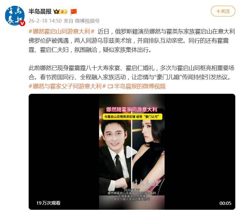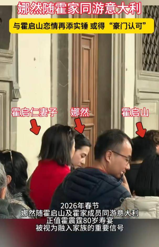 一组在意大利佛罗伦萨的偶遇照,让“豪门恋情”的猜测再次冲上热搜。网友镜头下,霍家二公子霍启山与演员娜然并肩排队参观美术馆,不仅身着默契的同色系休闲装,霍启山更是全程贴心帮娜然背包。关键信息在于,同行的还有霍启山的父亲霍震霆、弟弟霍启仁及其泰籍妻子,俨然一场温馨的家族集体旅行。