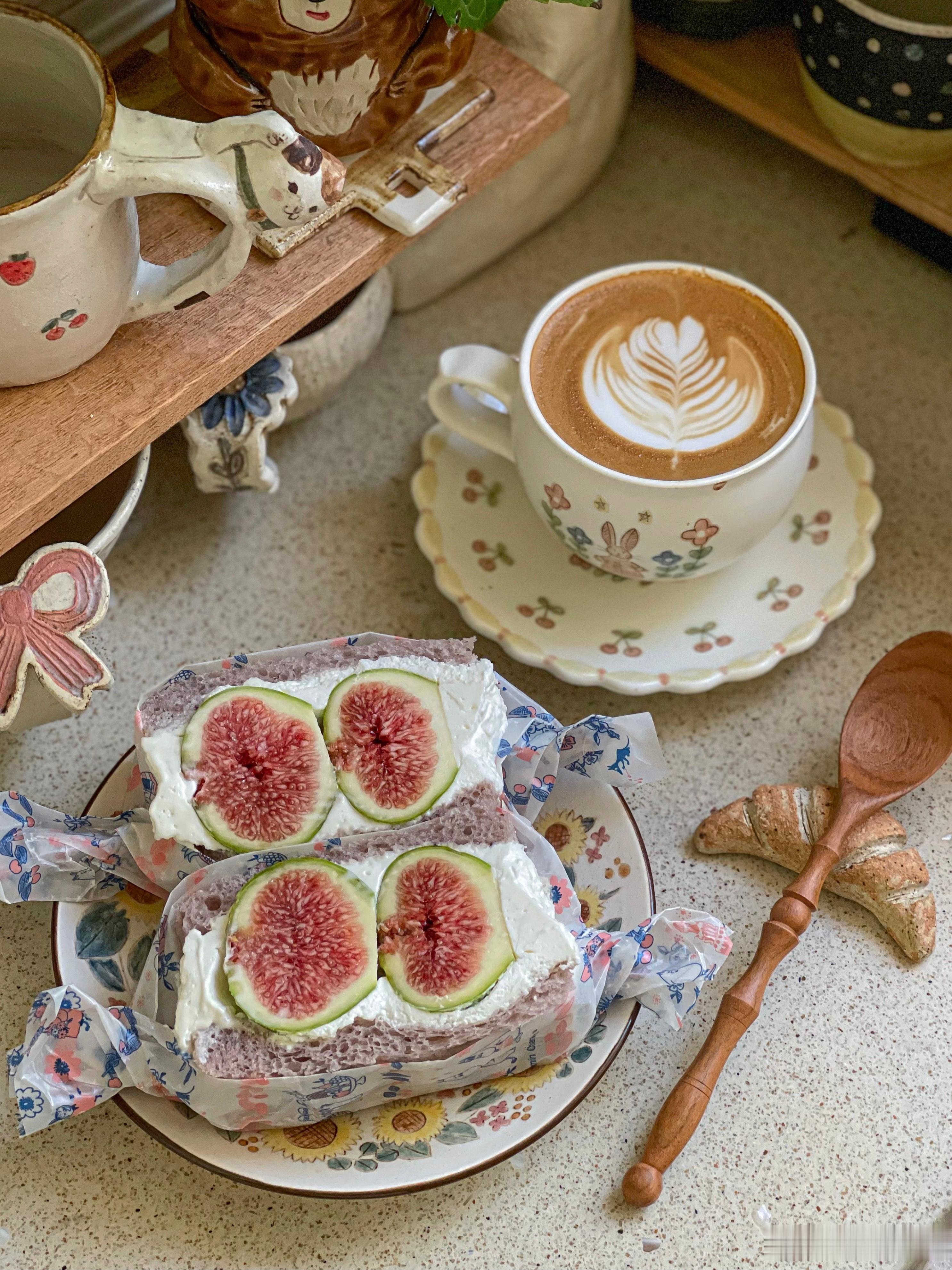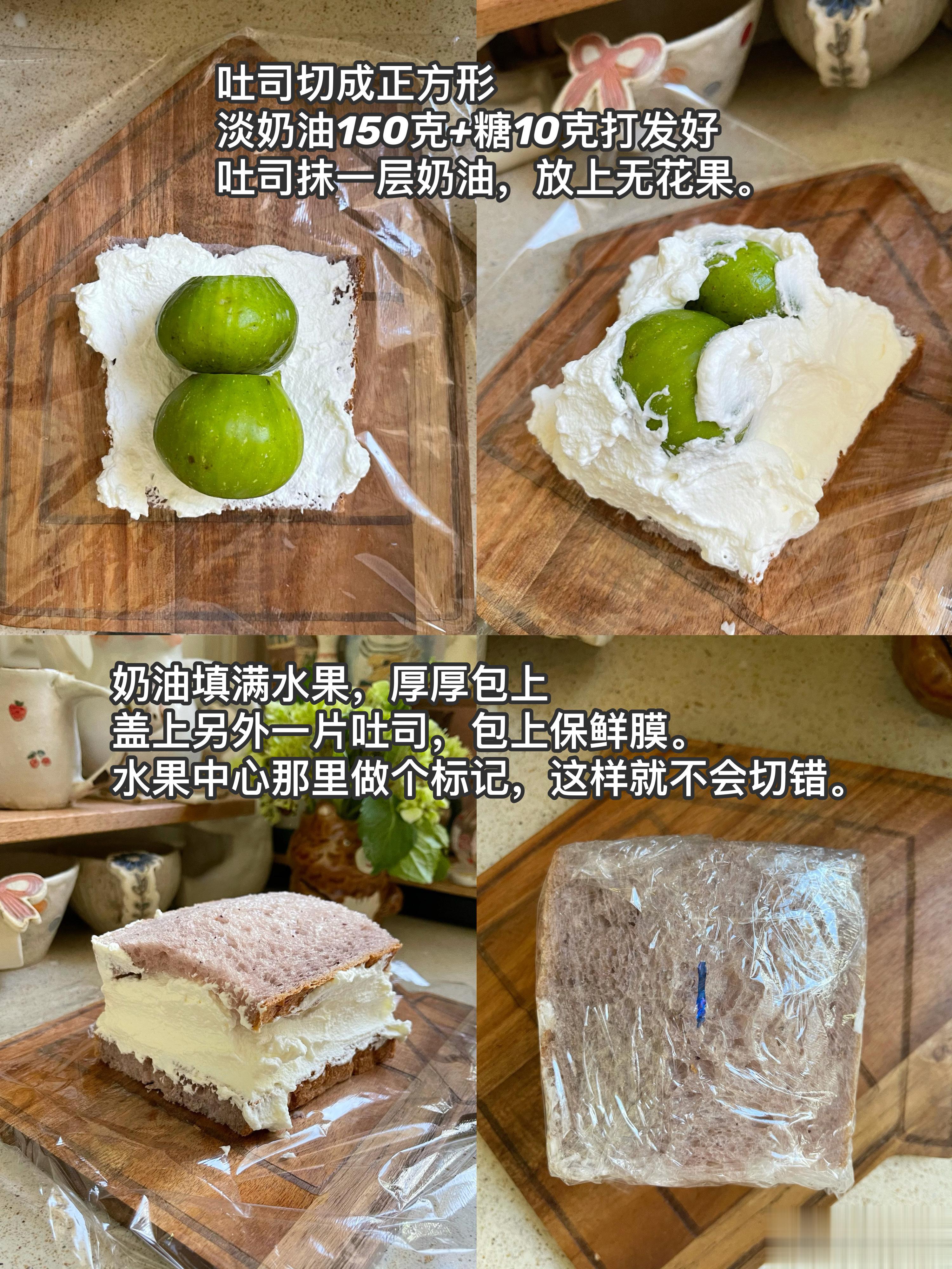 水果用的无花果,还可以换成别的水果,方子分享给大家,用自己做的吐司夹着香甜奶油,一口下去幸福满满。