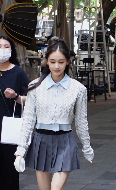 #重庆偶遇王子文拍戏#王子文的最新路透造型来啦,王子文少女感满满,百褶裙造型很适合王子文#王子文新剧拍摄状态#