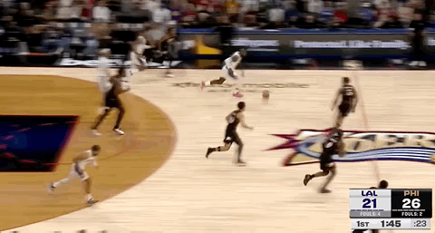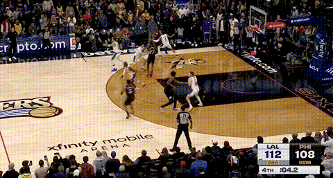 这时轮到76人慌了,以湖人的顶级火力+糟糕的防守,最有效的就是第三节把他们打崩免得夜长梦多,但今天自己反而在这一节连续吃瘪,难免着急上火。