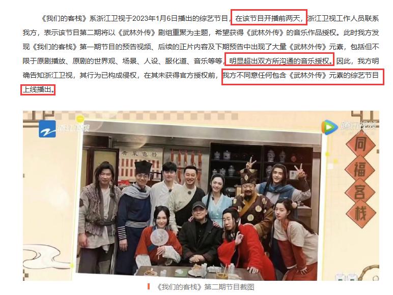 墙倒众人推,《武林外传》也对蓝台开火了。 8月27日,《武林外传》官方账号发布长文,炮轰蓝台,称《我们的客栈》节目故意侵犯《武林外传》著作权,并表示《王牌对王牌》《青春环游记》等综艺多次使用《武林外传》版权元素进行改编,均未获得授权。 根据长文显示,《我们的客栈》直到开播前两天才与版权方取得联系,希望可以获得相关音乐作品的授权。但版权法发现,《客栈》从第一期开始就大量使用版权内容,而且不仅仅涉及音乐问题,所以拒绝了节目组的要求,并向节目组发出侵权预警邮件。但节目组毫不在意,依然播出了相关内容。 《我们的客栈》是吴彤的节目,这大哥向来喜欢打着重聚的幌子卖情怀,看这架势,大概很多剧组重聚都没有买版权吧。 可能有人会问,既然《武林外传》官方在节目刚播出的时候就发现了对方的侵权行为,为什么当时不说,而直到现在才出来维权索要经济赔偿呢? 叨姐觉得吧,当初发现侵权的时候,版权方要么觉得犯不上跟大平台撕破脸,要么觉得节目播出对于版权方有利,所以警告一番也就算了。但现在,蓝台成过街老鼠,不踩上一脚就不礼貌了。 不过,不管当初版权方为什么不出声,也不管现在版权方到底有什么目的,只要蓝台侵权的事实存在,就支持维权。毕竟,蓝台,活该。