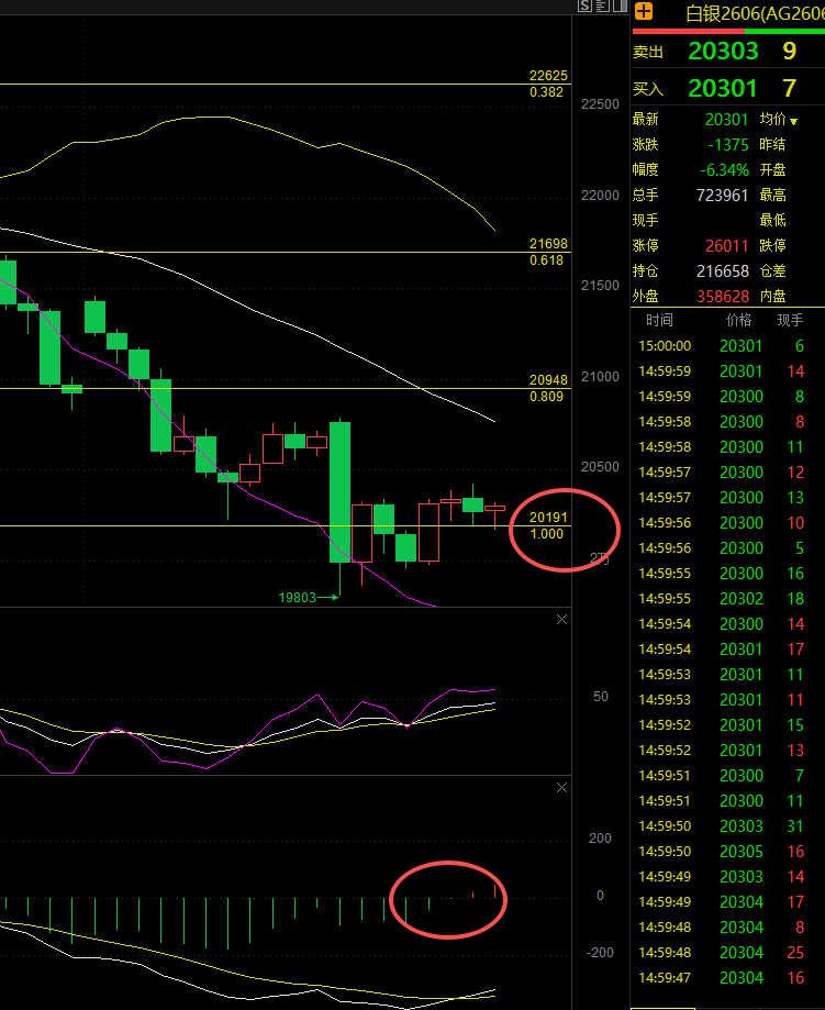 内盘:低库存格局未改,但资金大幅流出,内外价差进一步扩大,沪银2606合约收盘20553元/吨,跌6.34%,暴跌破关键支撑位,回调幅度显著。